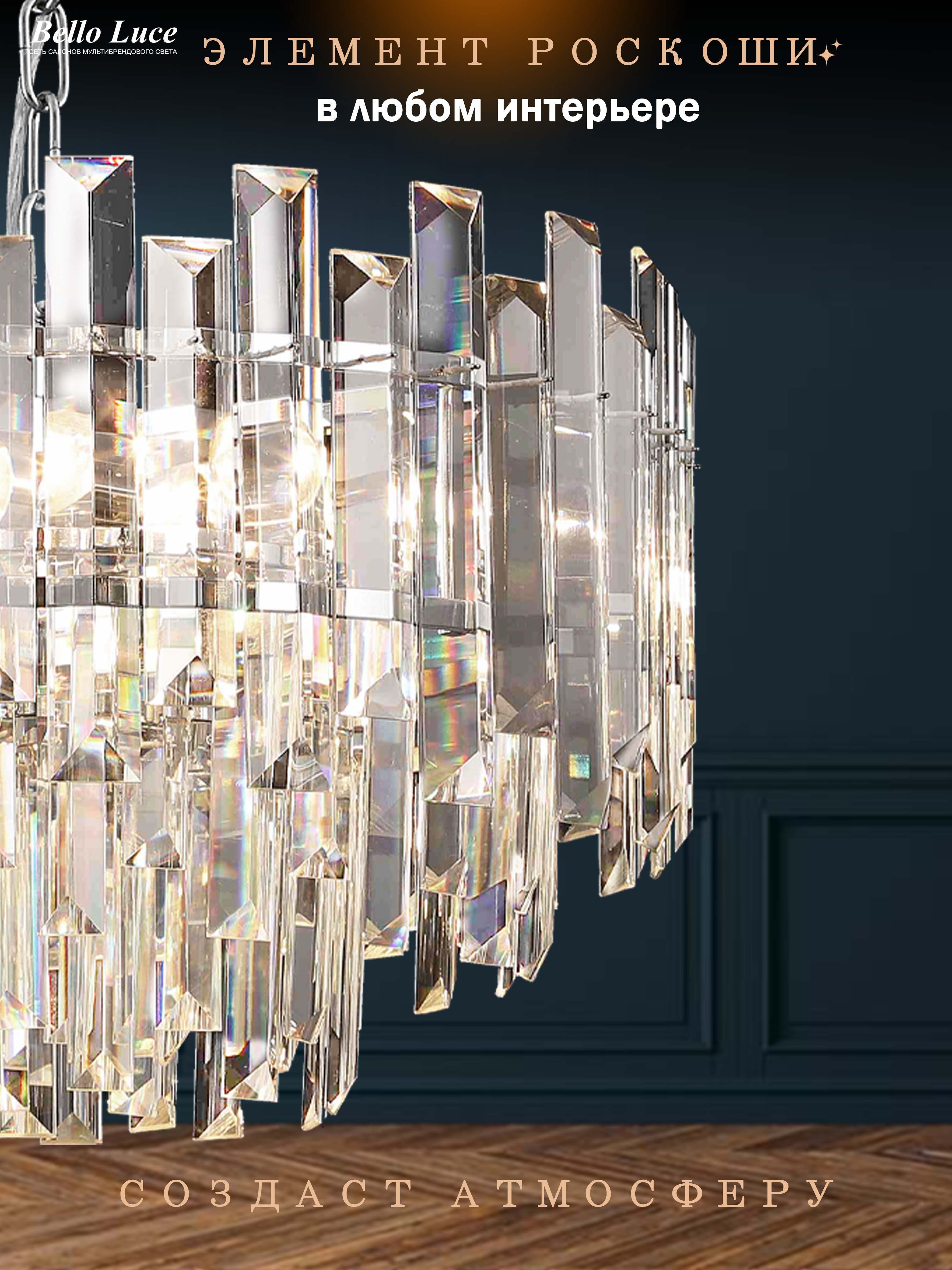 Представляем вашему вниманию роскошную хрустальную подвесную люстру, которая станет ярким акцентом в любом интерьере. Эта стильная модель выполнена в современном дизайне с элементами престижа, что делает её идеальным выбором для тех, кто ценит изысканность и оригинальность.