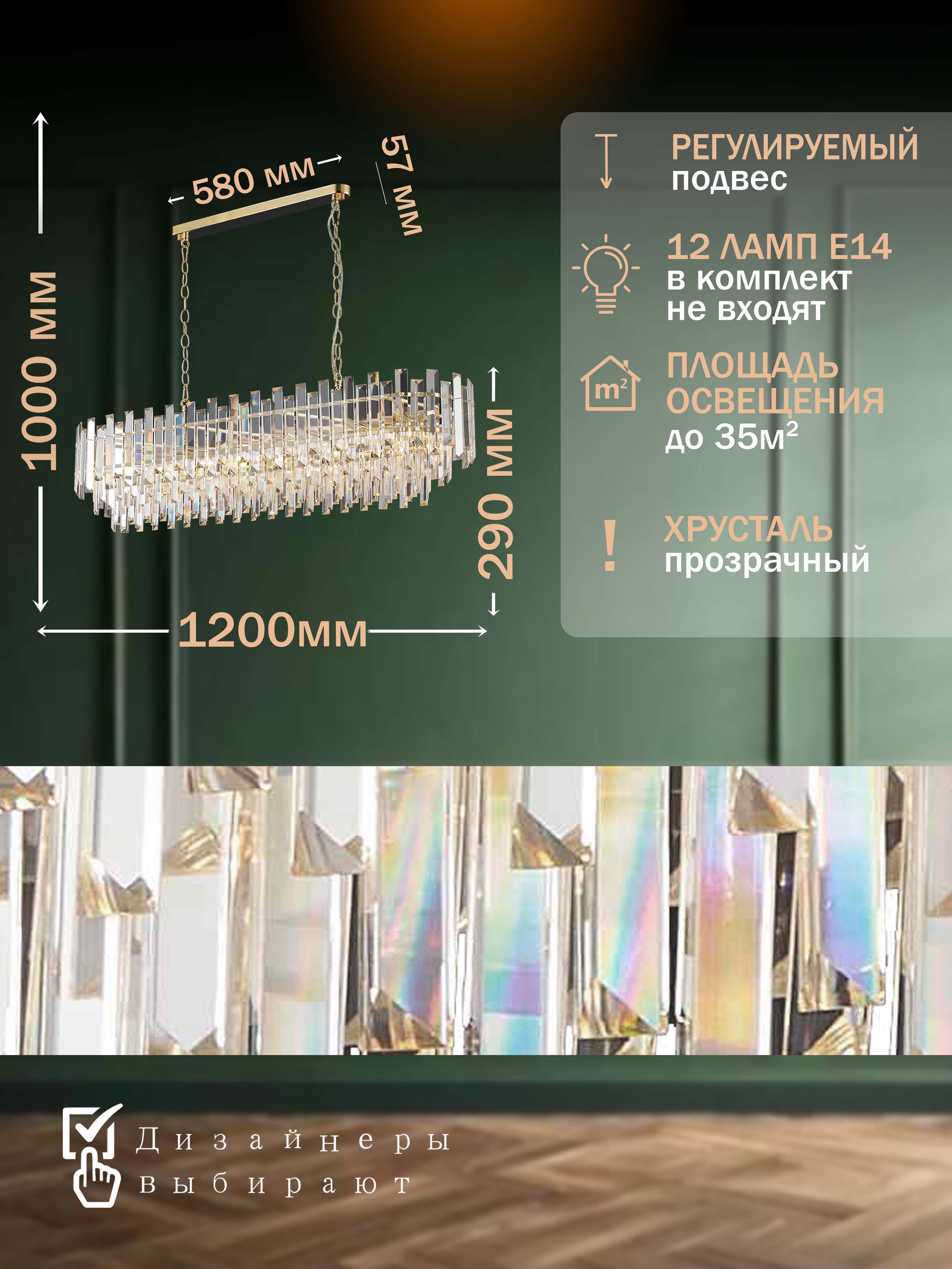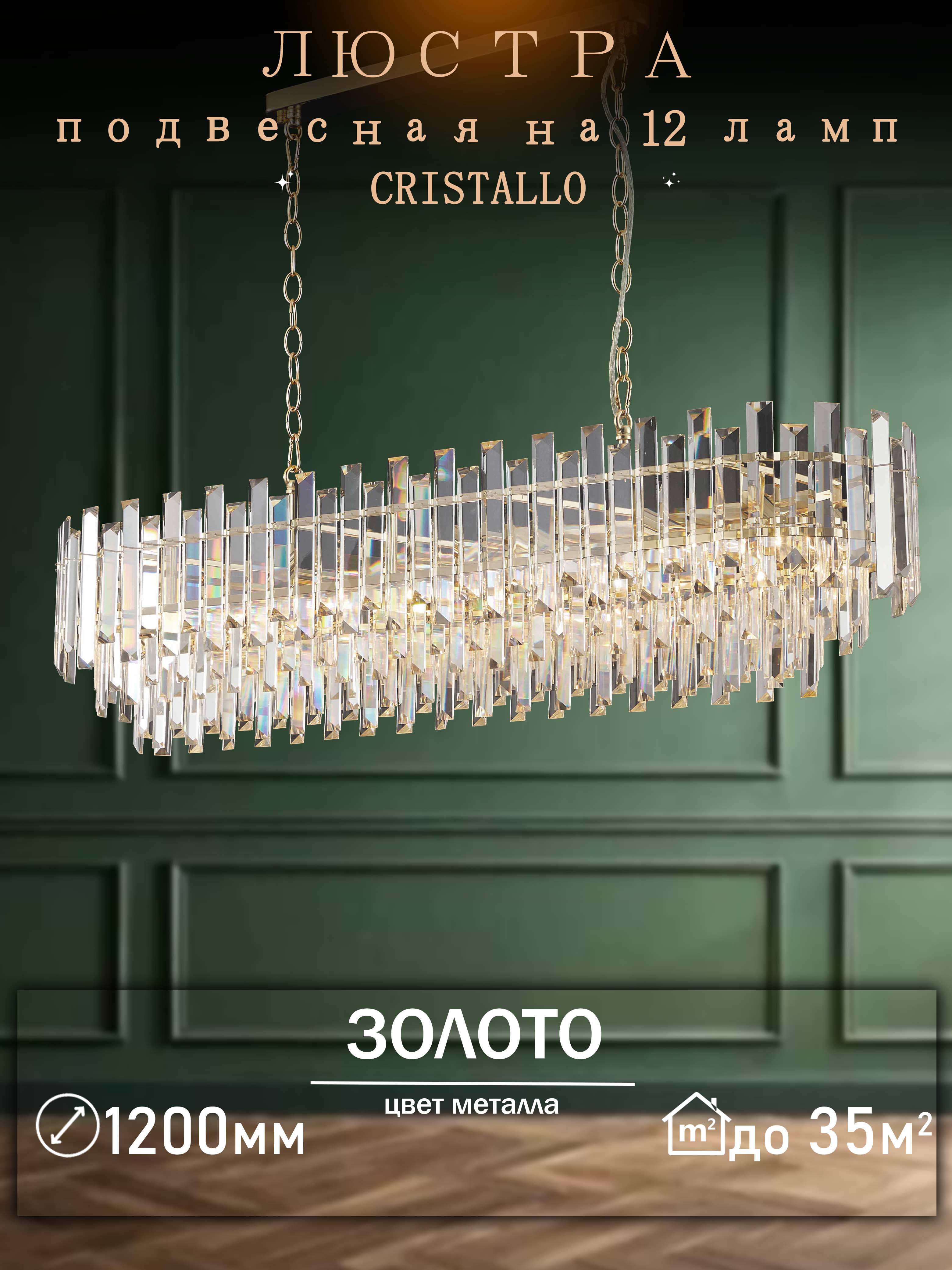 Компания Мегасвет предлагает вам оптом и в розницу Люстра Cristallo хрустальная золото овальная подвесная с прозрачными хрустальными подвесками на 12 ламп E14, регулировка по высоте по цене 38988 рублей.