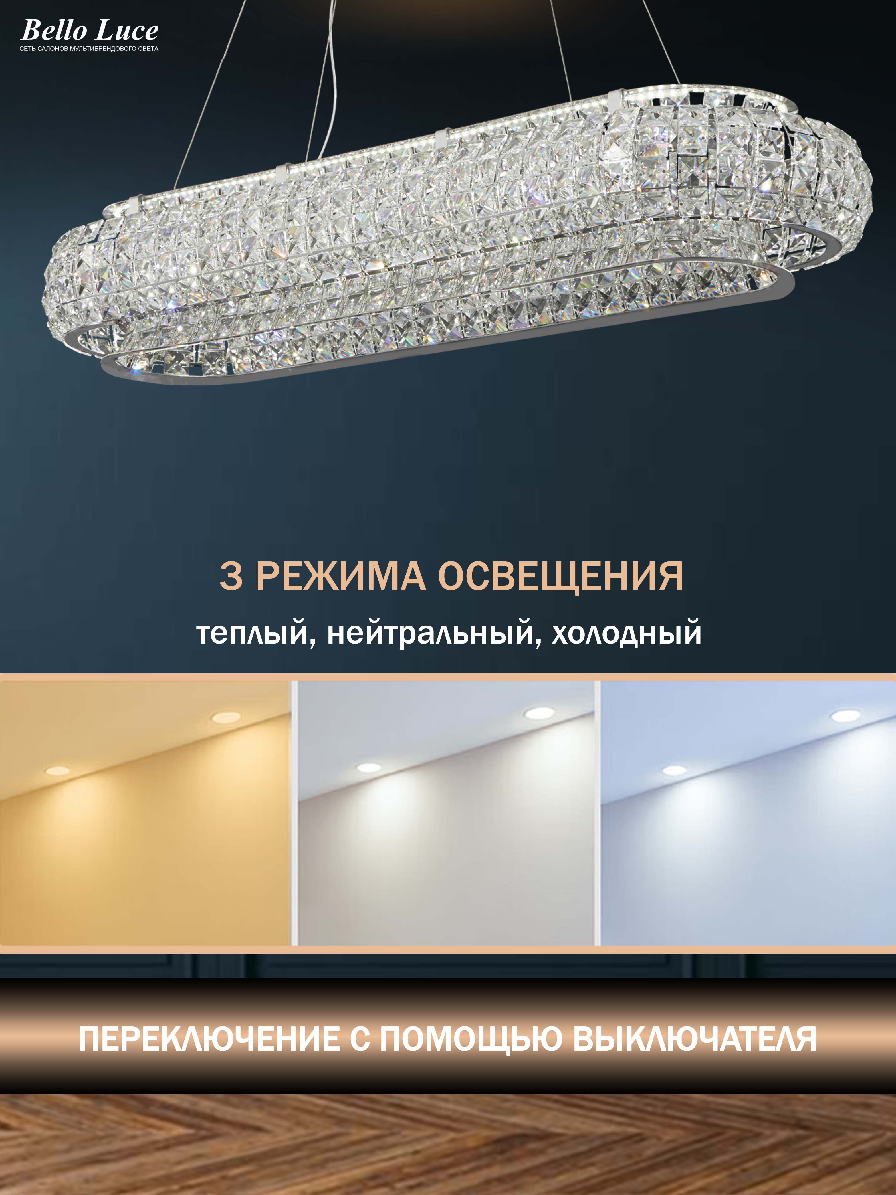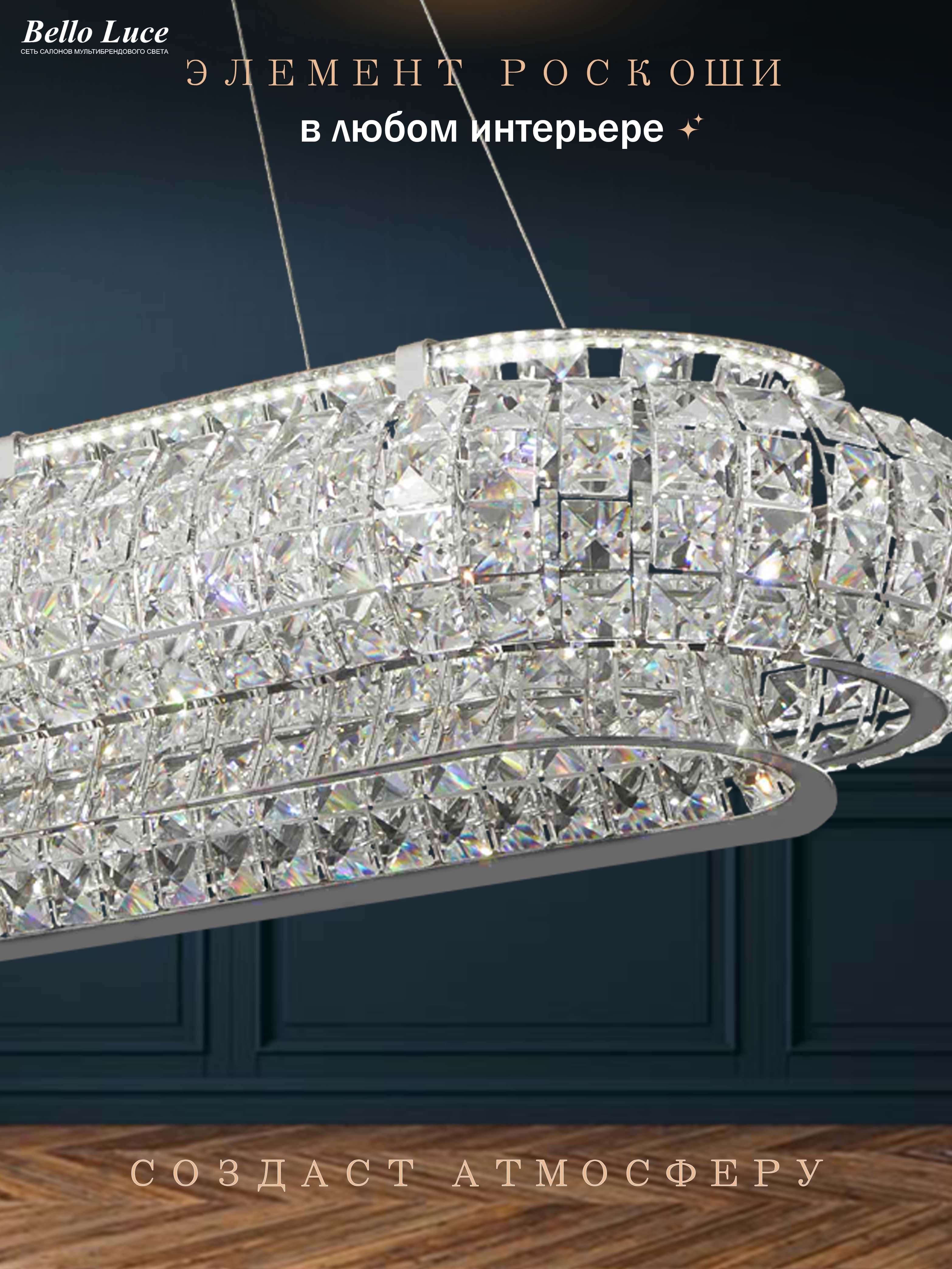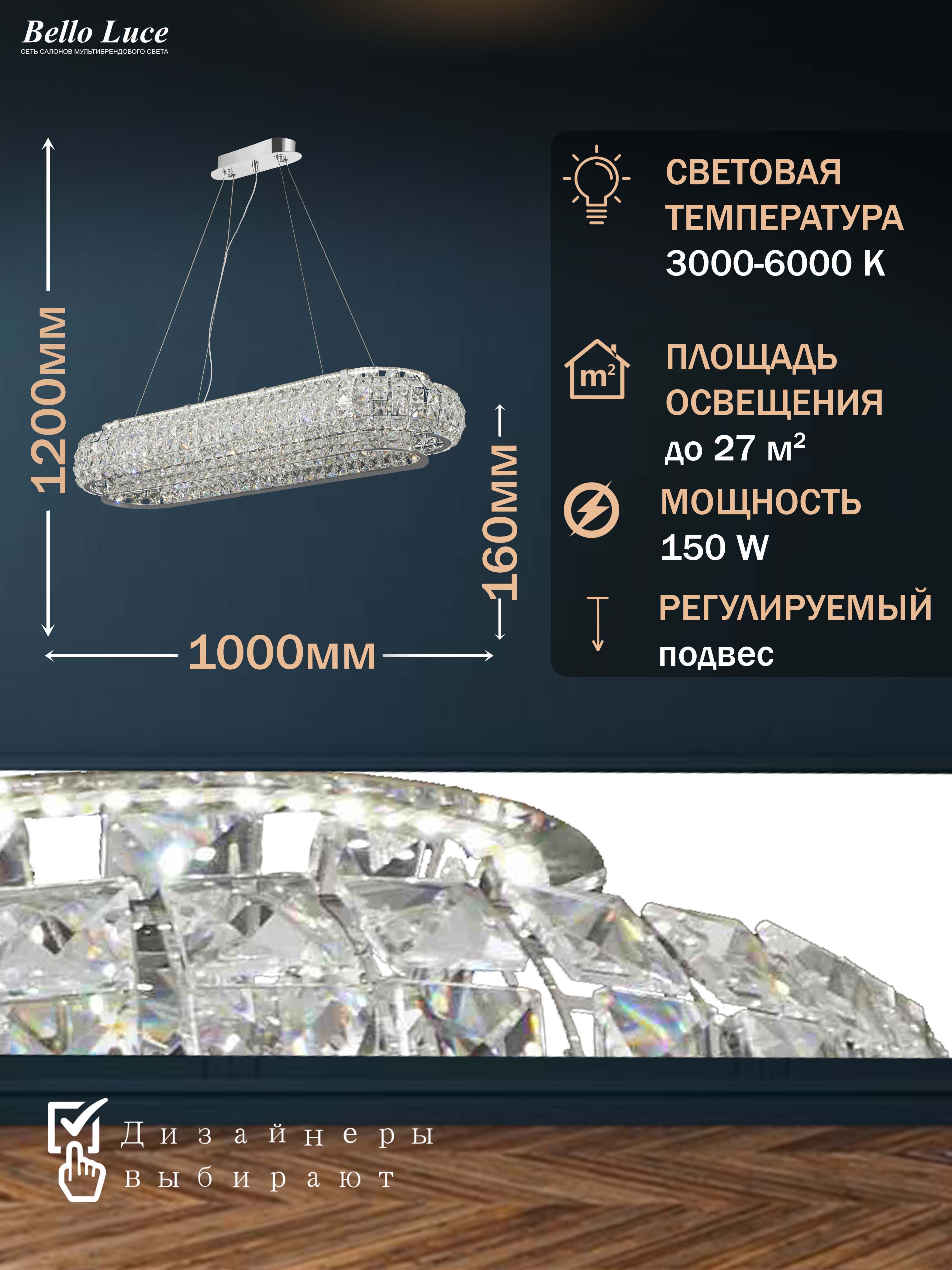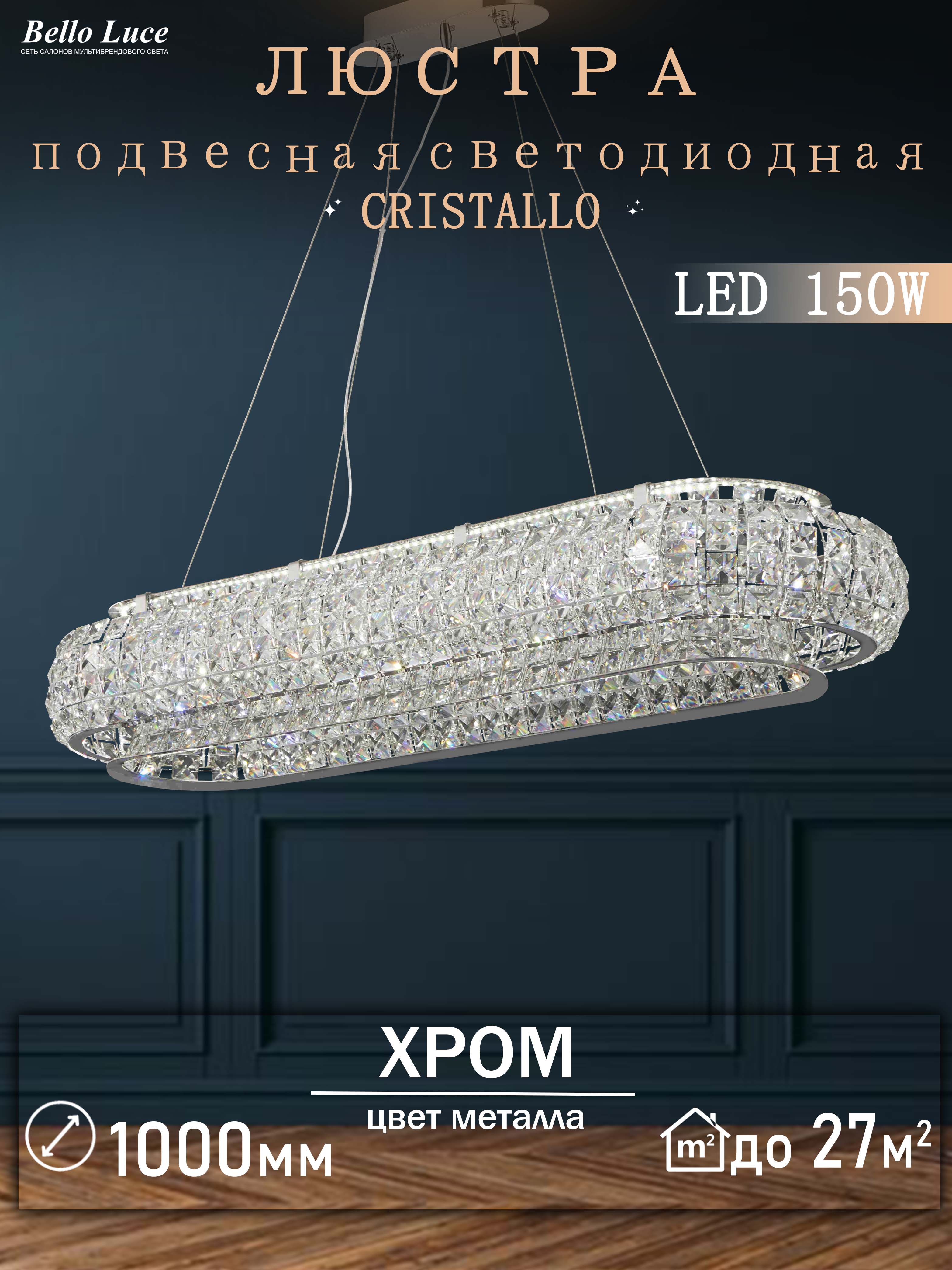 Компания Мегасвет предлагает вам оптом и в розницу Люстра Cristallo светодиодная хрустальная овальная хром подвесная с прозрачным хрустальным декором, 150W 3000-6000K, регулировка по высоте по цене 57960 рублей.
