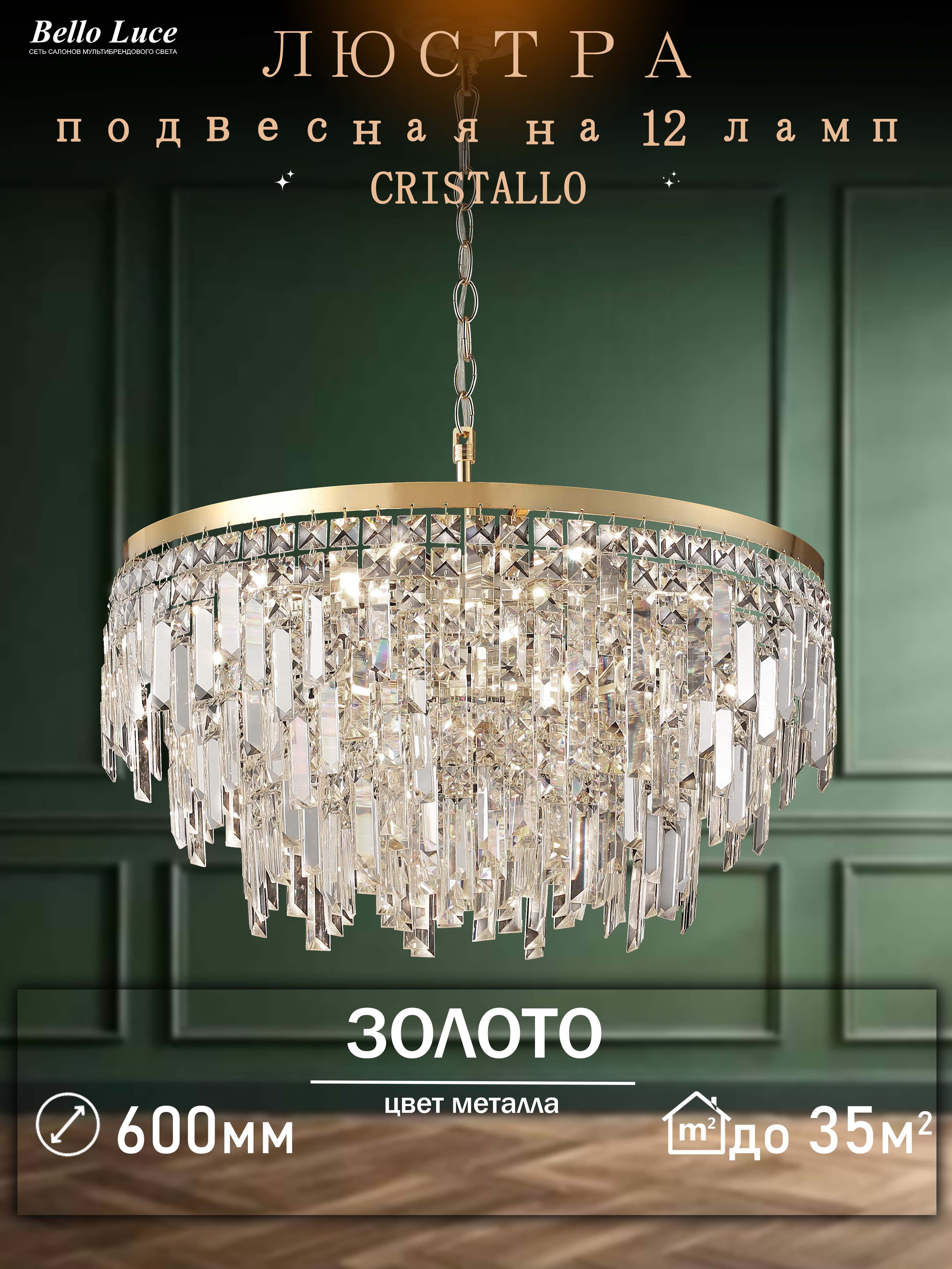 Компания Мегасвет предлагает вам оптом и в розницу Люстра Cristallo хрустальная золото подвесная круглая с прозрачными хрустальными подвесками на 12 ламп E14, регулировка по высоте по цене 32301 рублей.