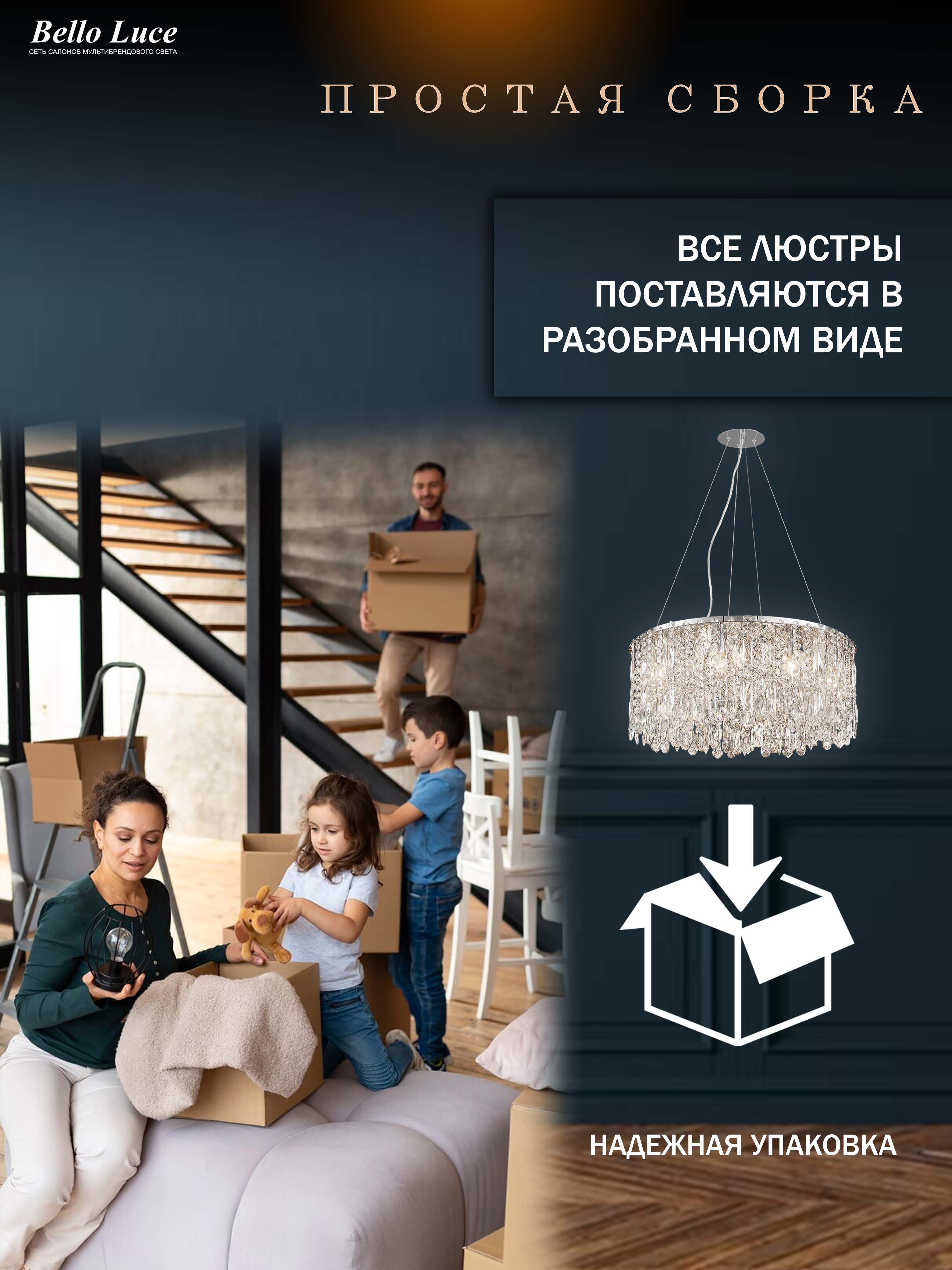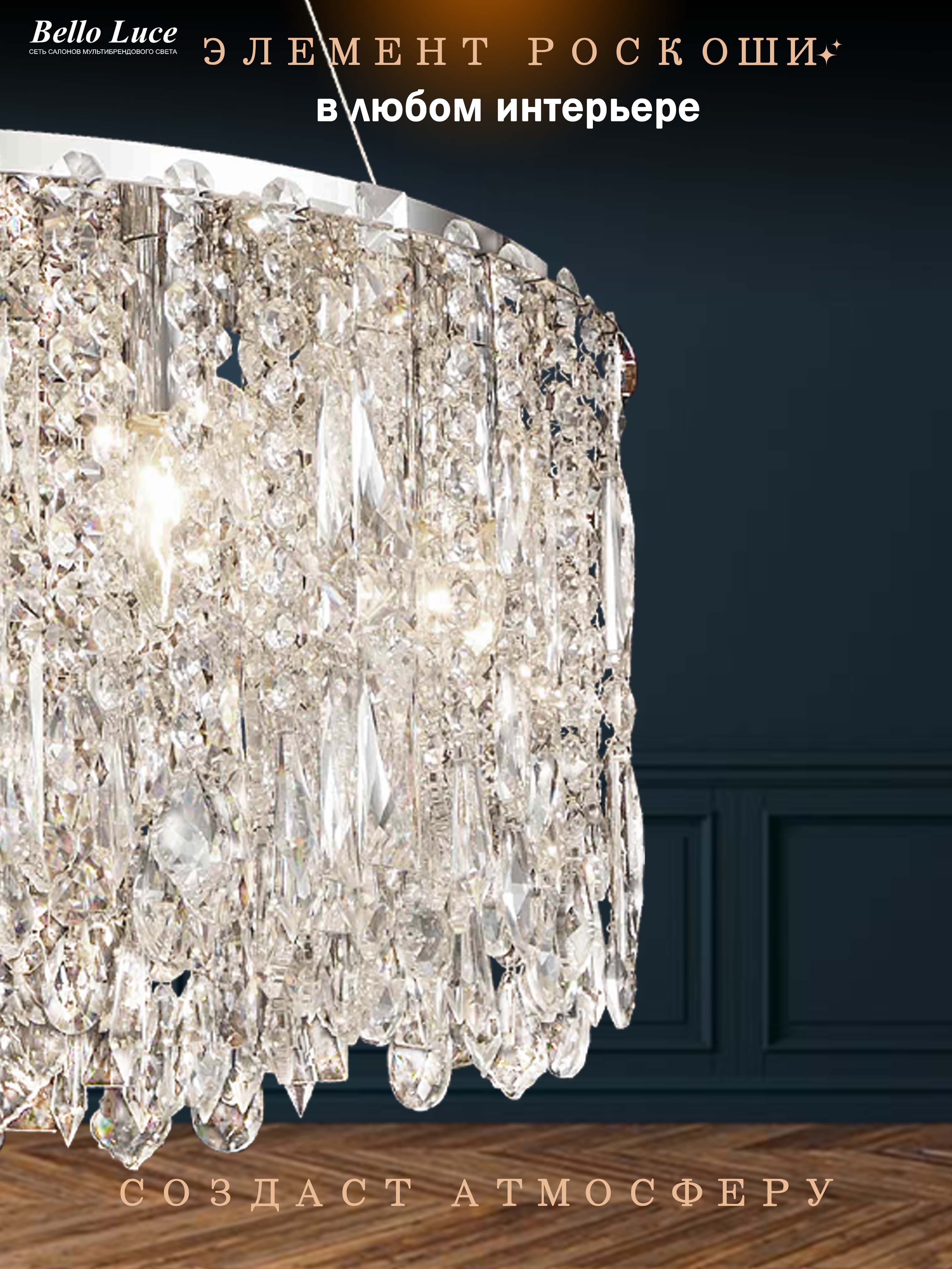 Представляем вашему вниманию роскошную хрустальную подвесную люстру, которая станет ярким акцентом в любом интерьере. Эта стильная модель выполнена в современном дизайне с элементами престижа, что делает её идеальным выбором для тех, кто ценит изысканность и оригинальность.