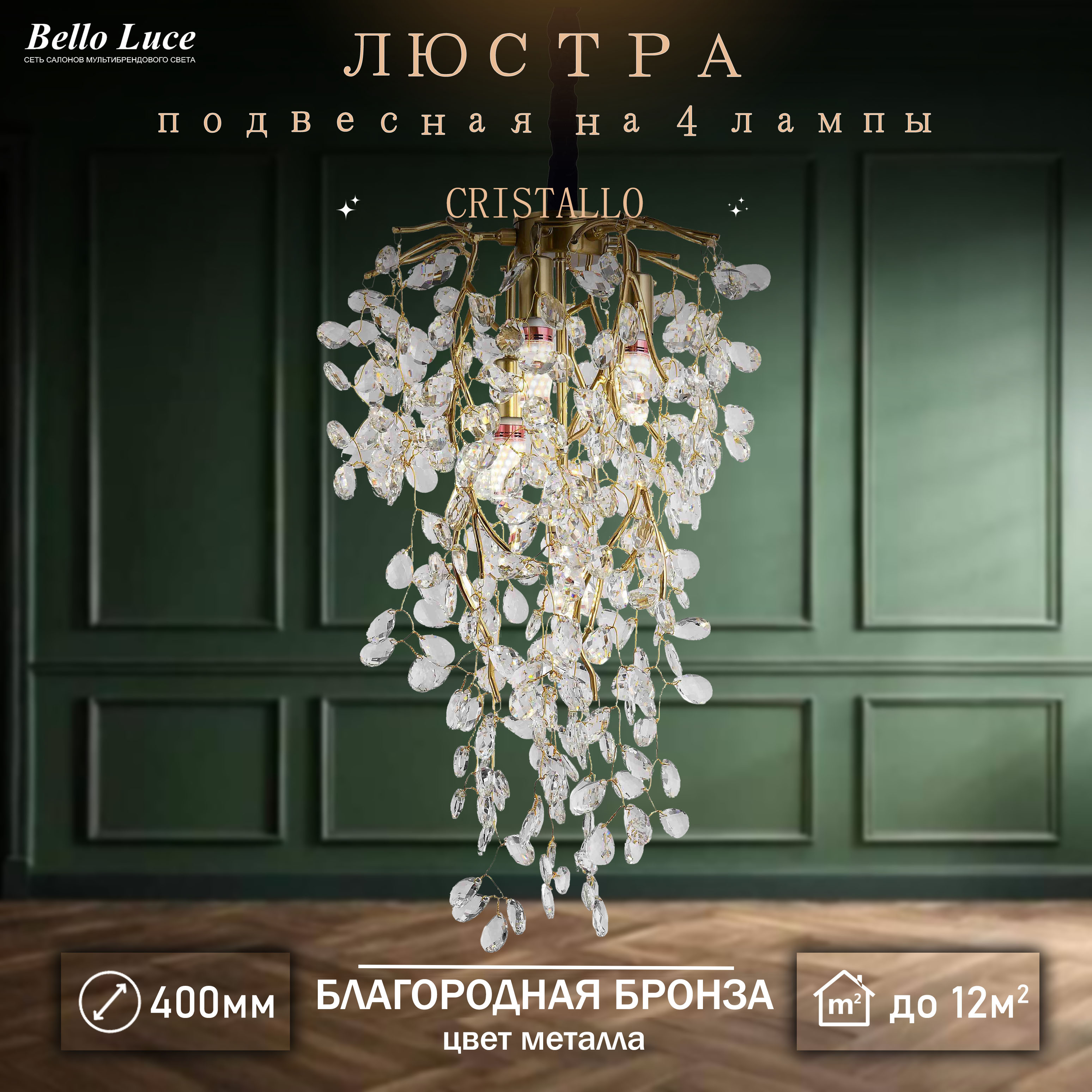 Компания Мегасвет предлагает вам оптом и в розницу Люстра Cristallo хрустальная бронза подвесная с прозрачными хрустальными подвесками на 4 лампы E14, регулировка по высоте по цене 8943 рублей.