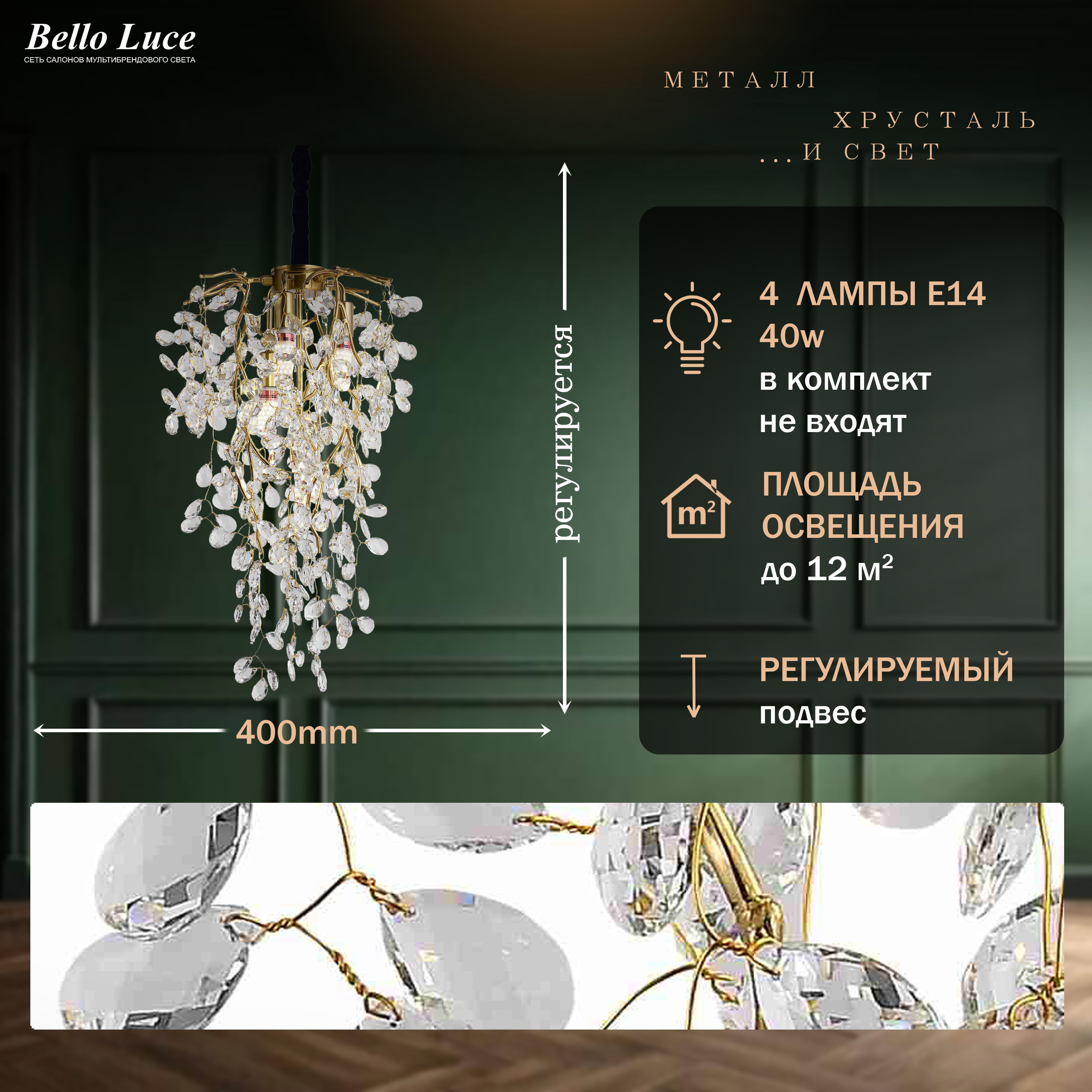 | Материал плафона / абажура | Хрусталь |