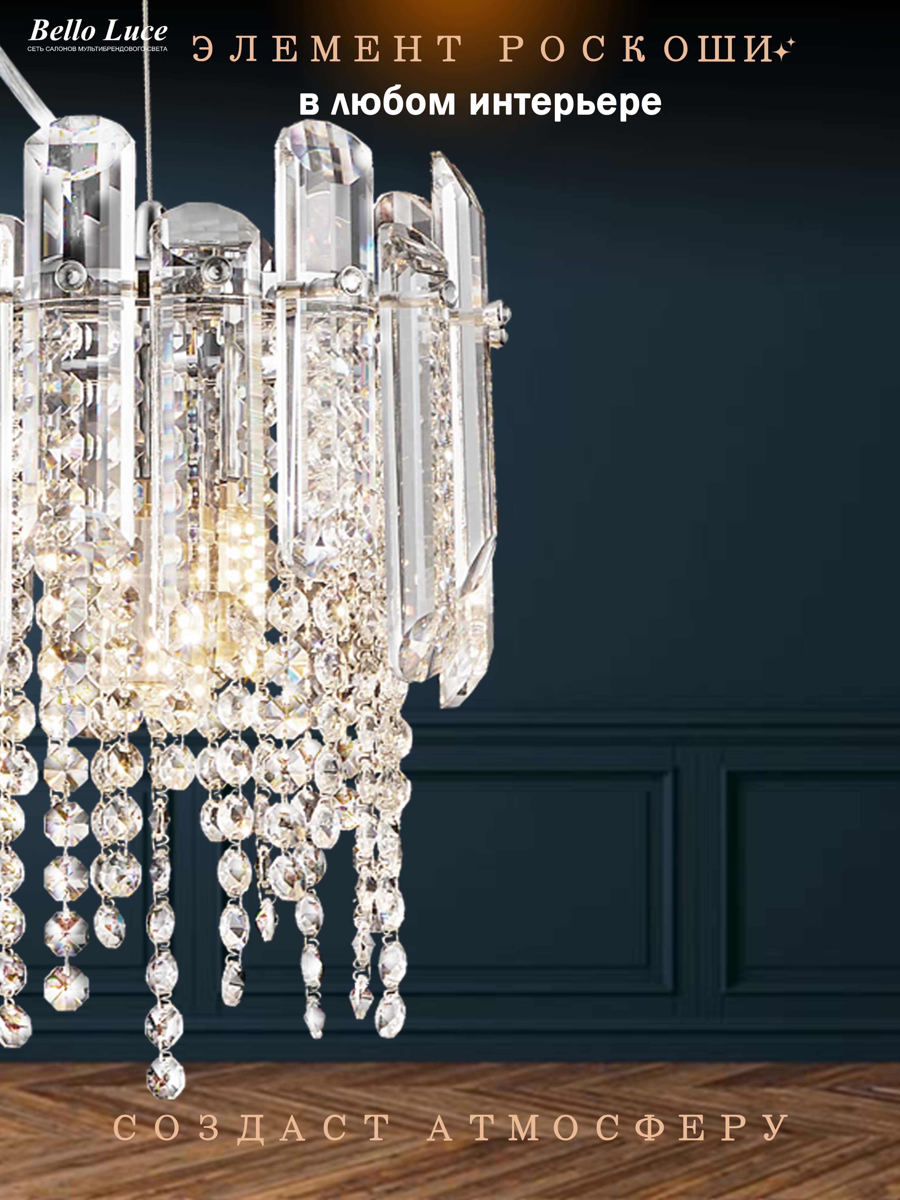 Представляем вашему вниманию роскошную хрустальную подвесную люстру, которая станет ярким акцентом в любом интерьере. Эта стильная модель выполнена в современном дизайне с элементами престижа, что делает её идеальным выбором для тех, кто ценит изысканность и оригинальность.