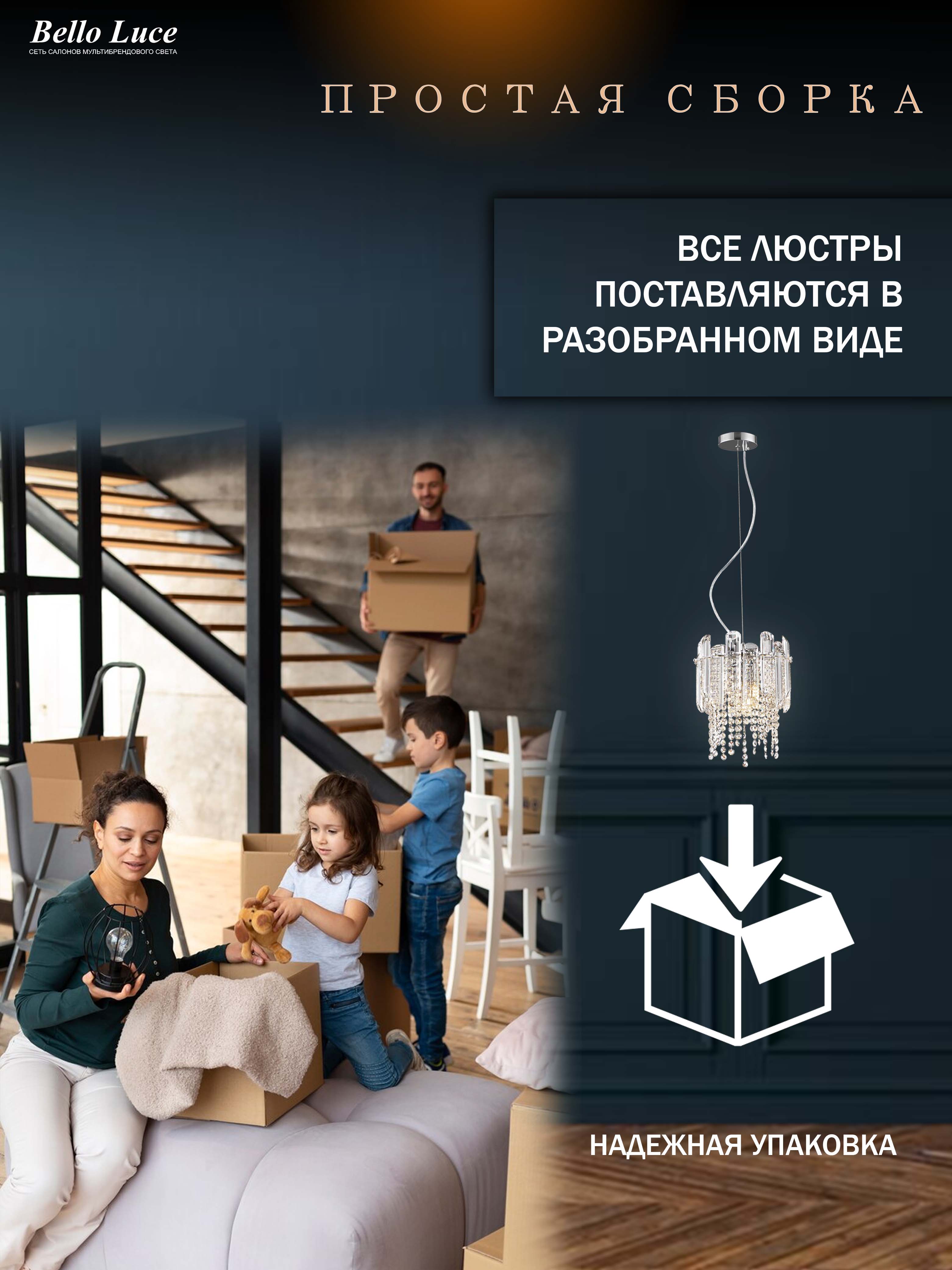 Благодаря своему лаконичному дизайну, люстра будет прекрасно смотреться как в гостиной, так и в спальне или кухне. Она не только освещает пространство, но и выступает в роли художественного элемента, способного преобразить любой уголок вашего дома. Она станет отличным дополнением к современному интерьеру, придавая ему завершенность.