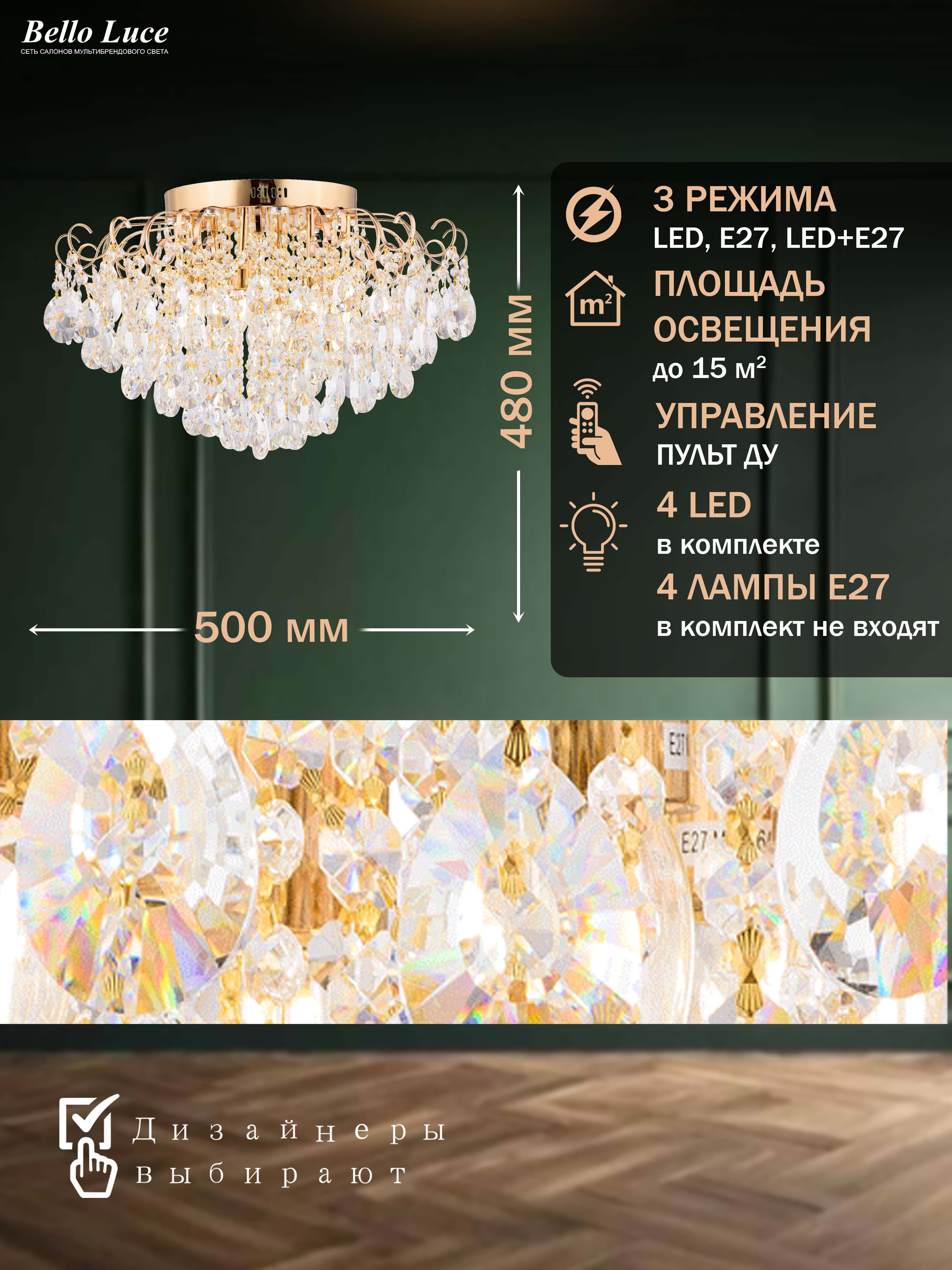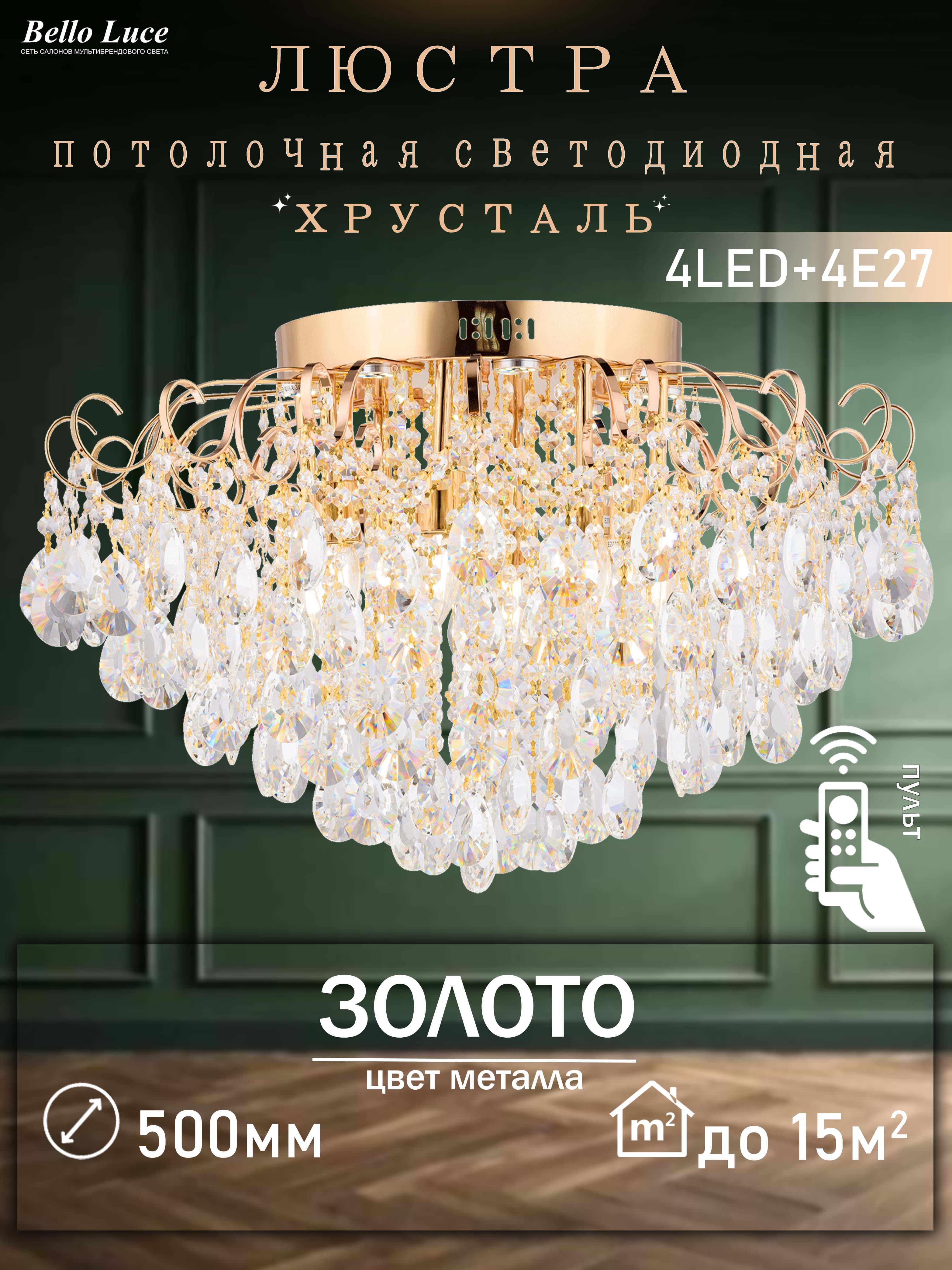 Компания Мегасвет предлагает вам оптом и в розницу Люстра хрустальная потолочная с подсветкой с пультом круглая золото с прозрачными хрустальными подвесками на 8Led модулей + 8 E27 по цене 17910 рублей.