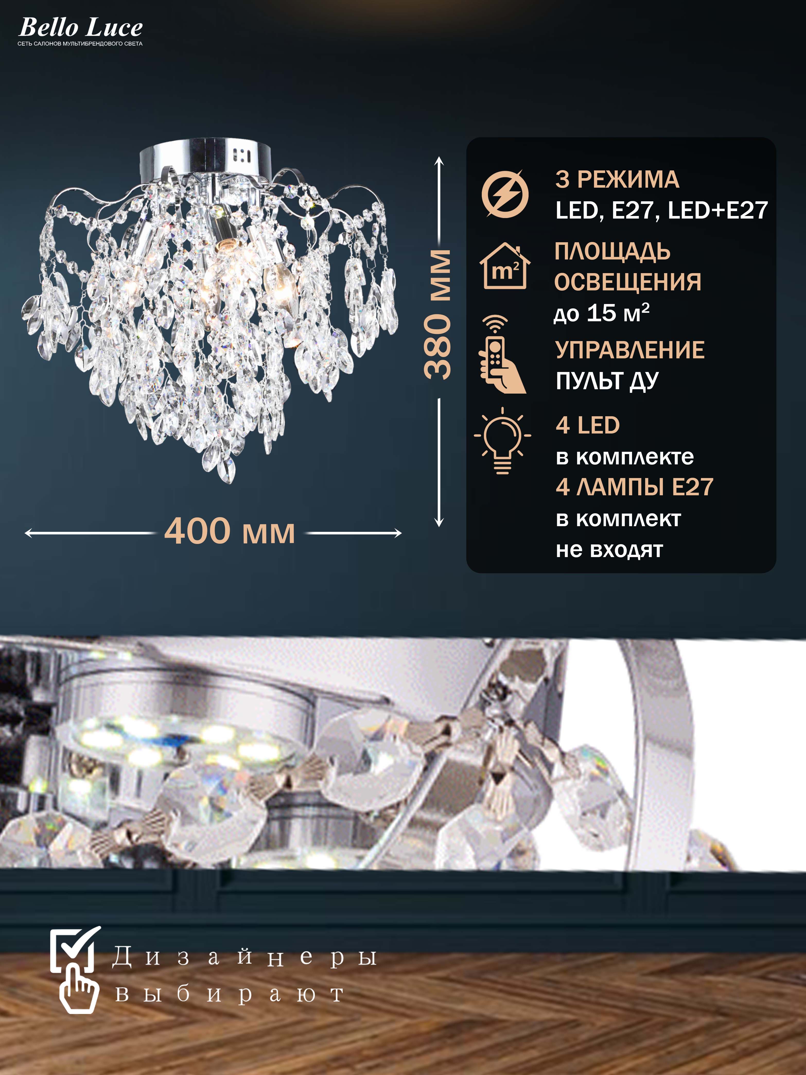 Представляем вашему вниманию стильную потолочную люстру с хрустальными элементами и подсветкой, которая станет изысканным дополнением вашего интерьера. Эта модель сочетает в себе современный дизайн и функциональность, обеспечивая идеальное освещение для любого помещения. Использование хрусталя придаёт люстре престижный вид, а отделка добавляет элегантности и шика.