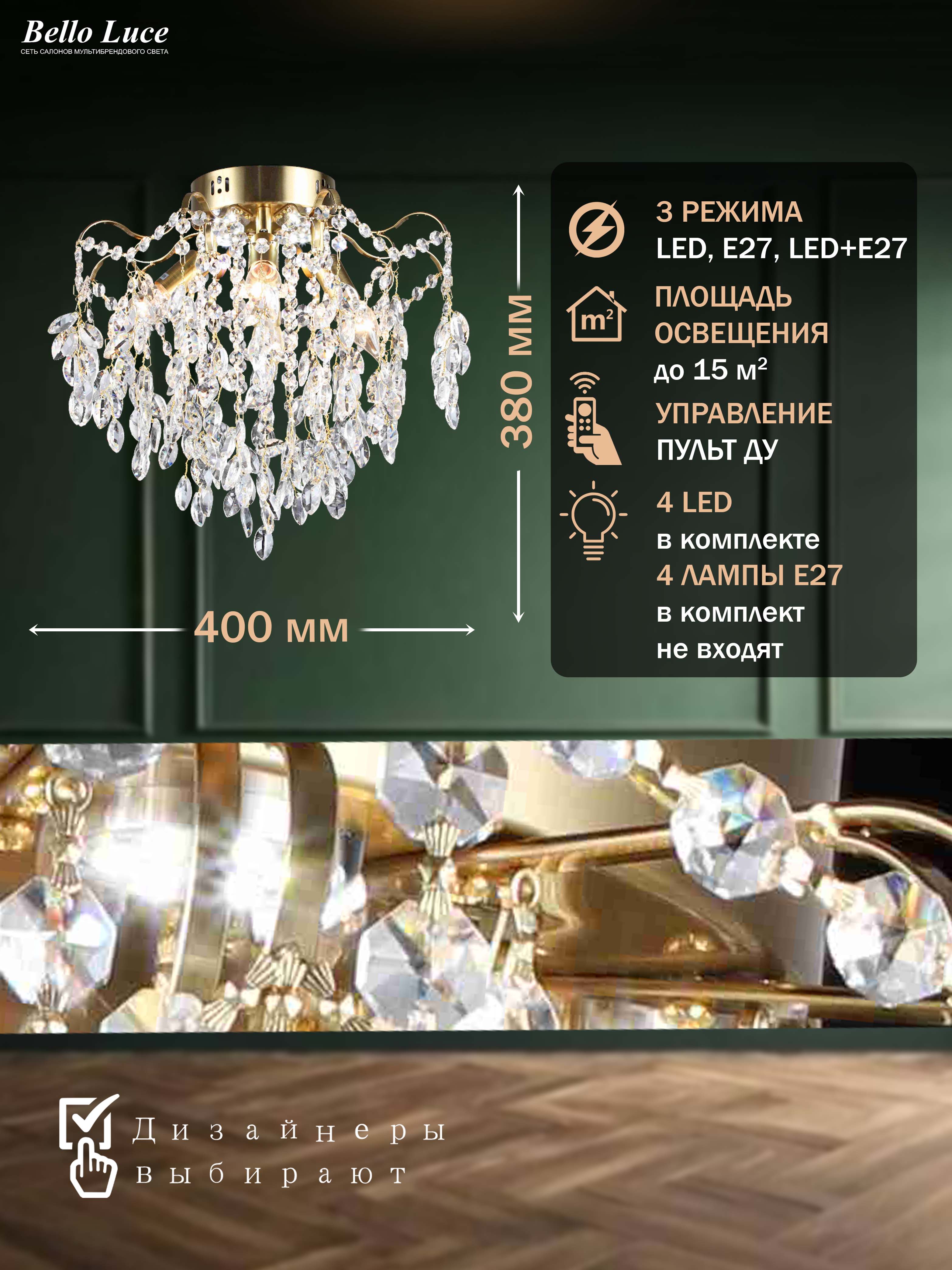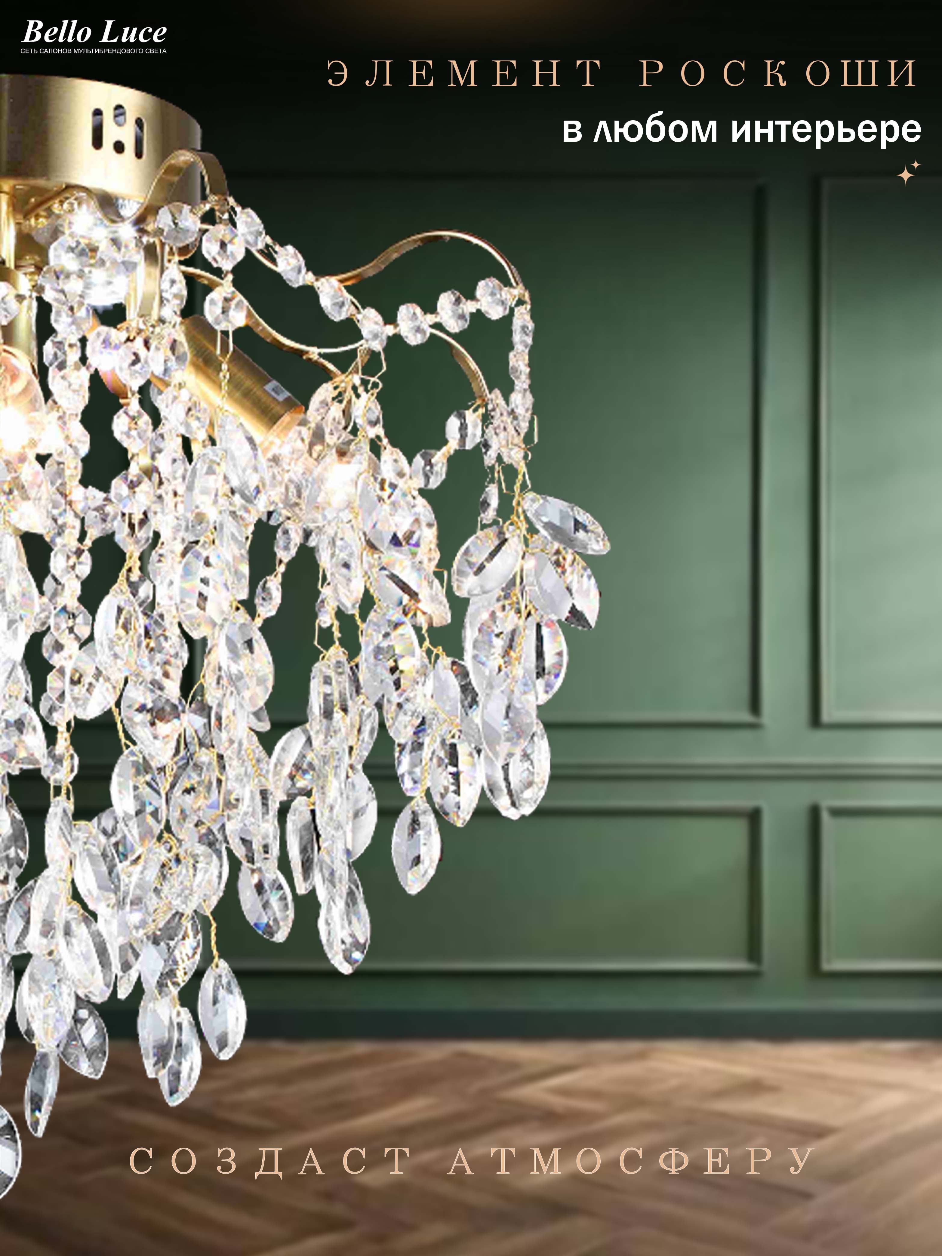 Представляем вашему вниманию стильную потолочную люстру с хрустальными элементами и подсветкой, которая станет изысканным дополнением вашего интерьера. Эта модель сочетает в себе современный дизайн и функциональность, обеспечивая идеальное освещение для любого помещения. Использование хрусталя придаёт люстре престижный вид, а отделка добавляет элегантности и шика.