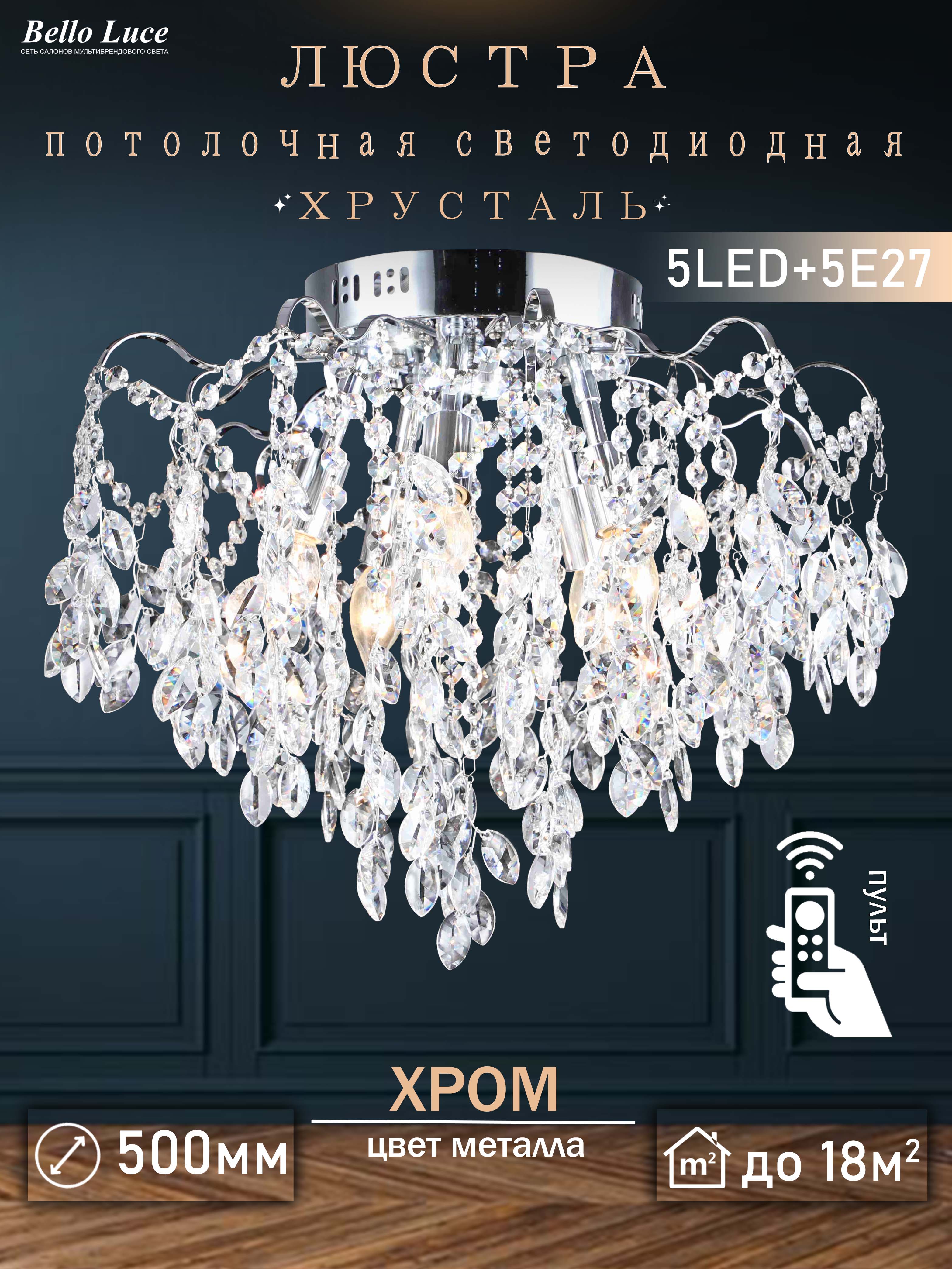 Компания Мегасвет предлагает вам оптом и в розницу Люстра хрустальная потолочная с подсветкой с пультом круглая хром с прозрачными хрустальными подвесками на 5Led модулей + 5 E27 по цене 12186 рублей.