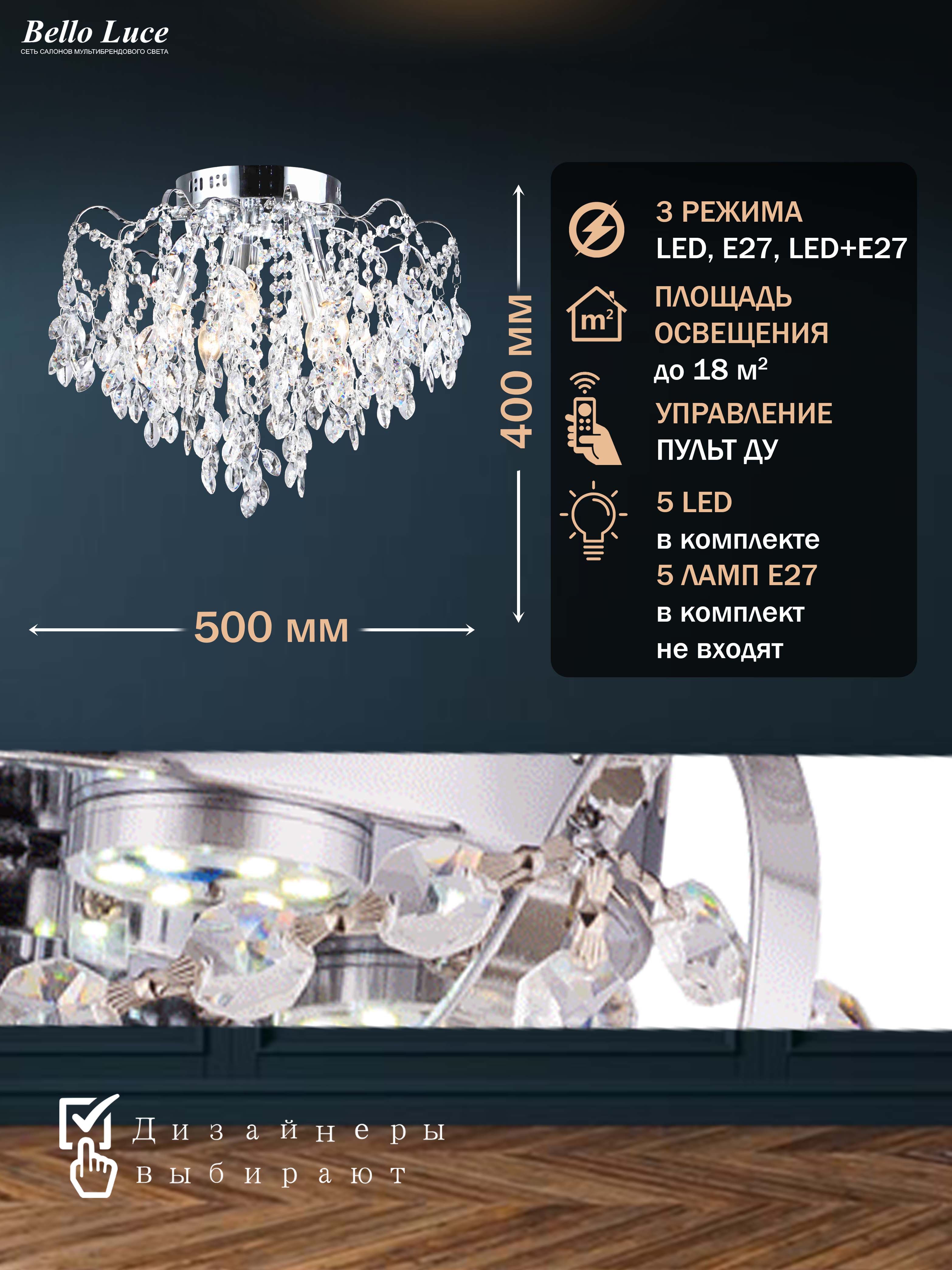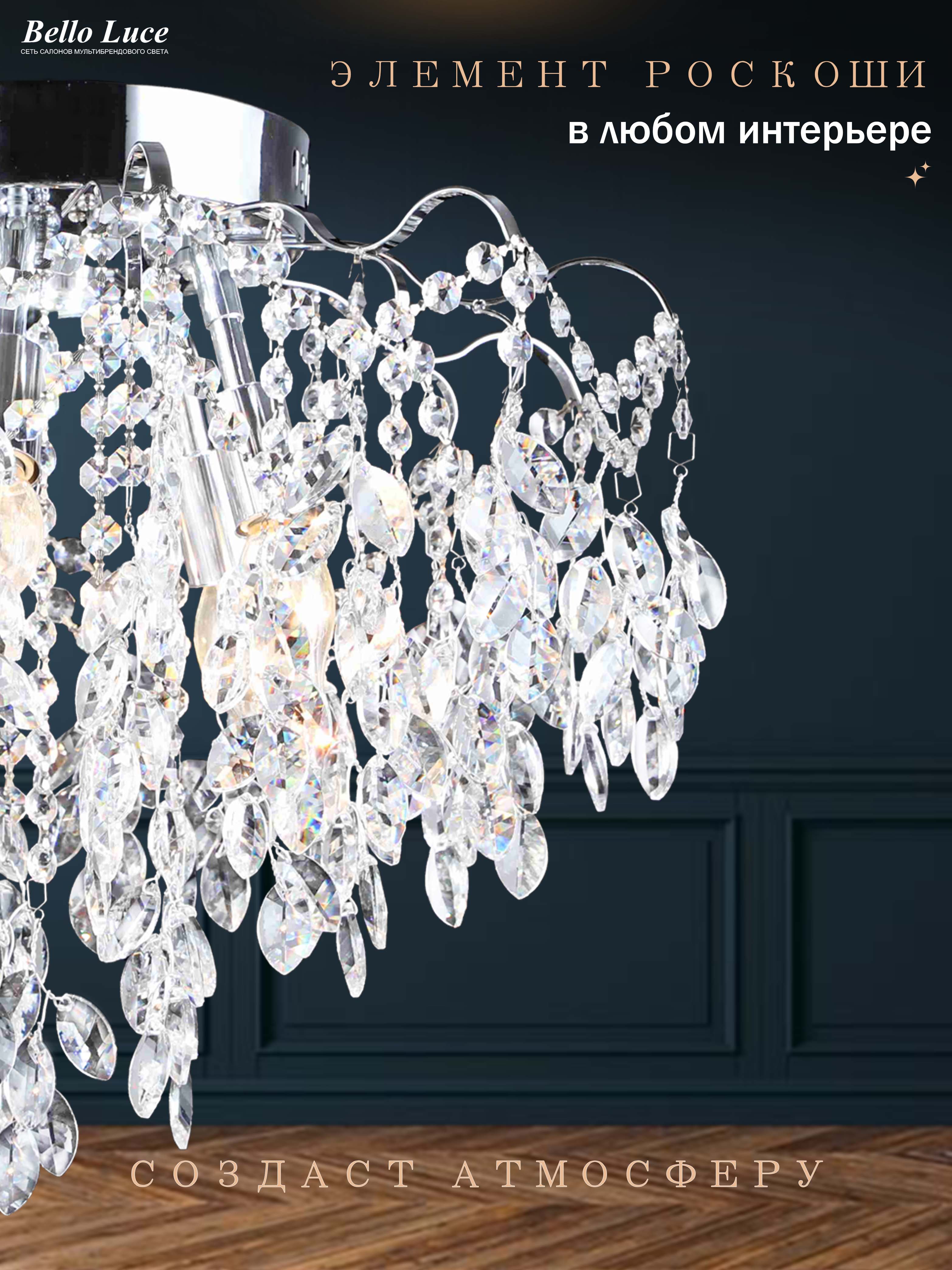 Представляем вашему вниманию стильную потолочную люстру с хрустальными элементами и подсветкой, которая станет изысканным дополнением вашего интерьера. Эта модель сочетает в себе современный дизайн и функциональность, обеспечивая идеальное освещение для любого помещения. Использование хрусталя придаёт люстре престижный вид, а отделка добавляет элегантности и шика.