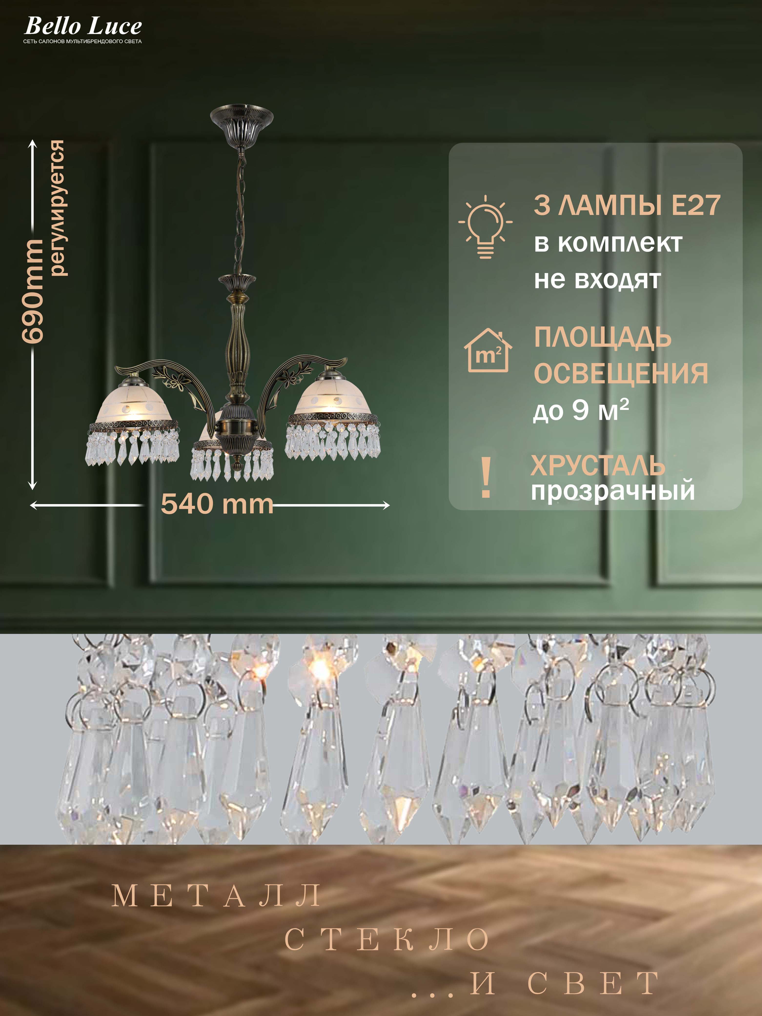 Компания Мегасвет предлагает вам оптом и в розницу Люстра Классика с хрустальными подвесками бронза подвесная на 3 лампы E27, регулировка по высоте по цене 6561 рублей.