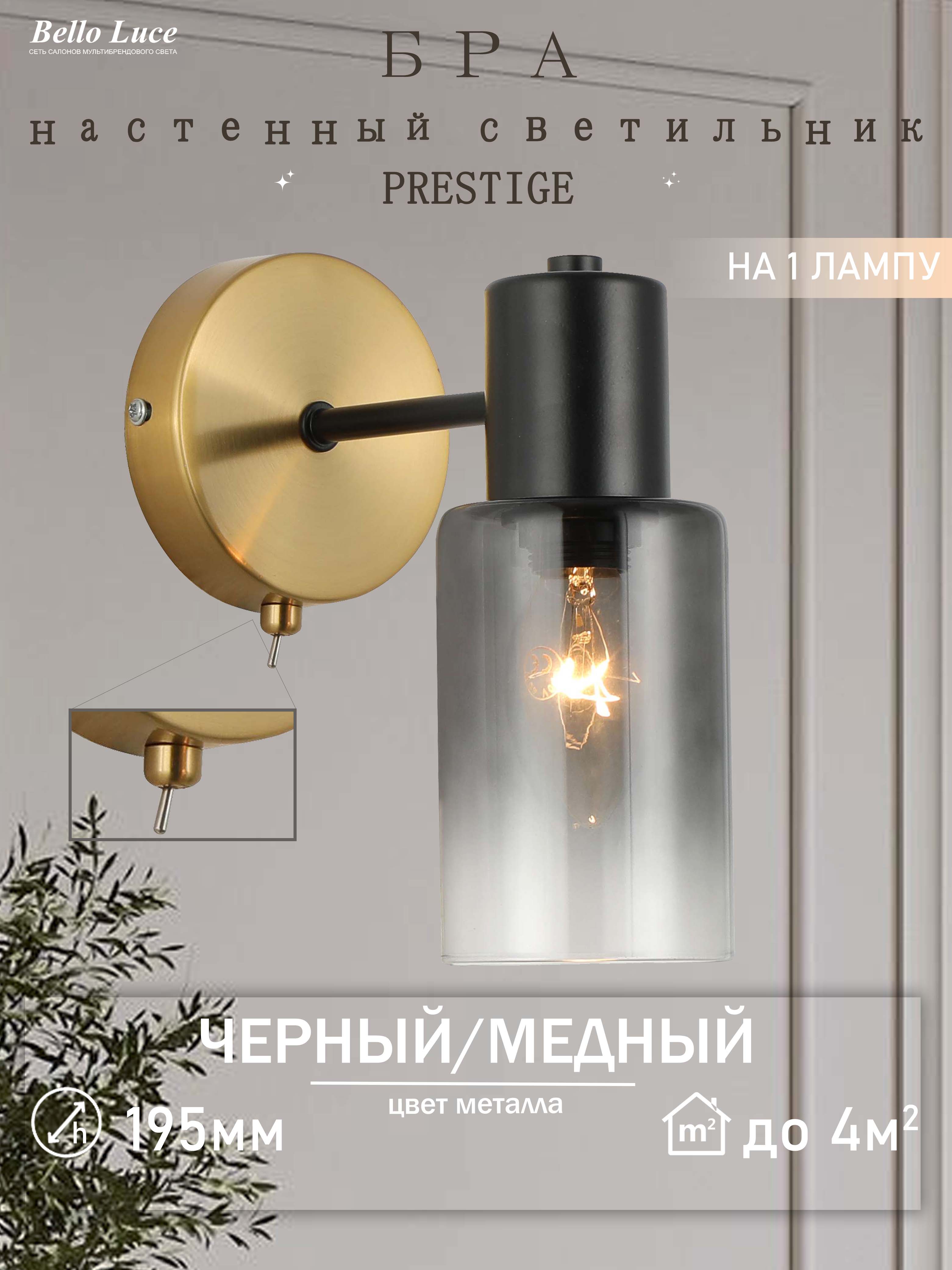 Компания Мегасвет предлагает вам оптом и в розницу Светильник настенный, бра Престиж медь+черный на 1 лампу E14, выключатель на корпусе по цене 1341 рублей.