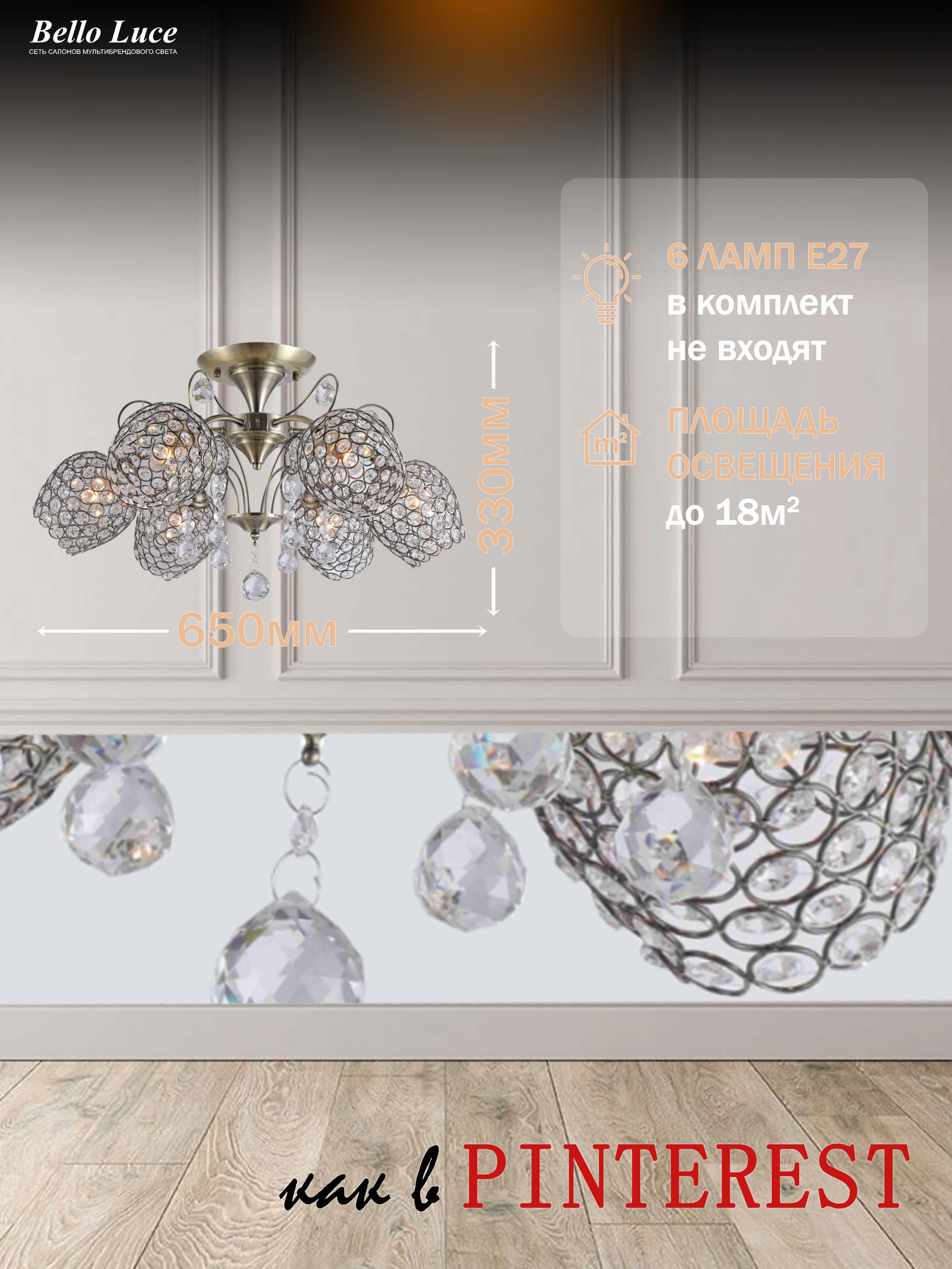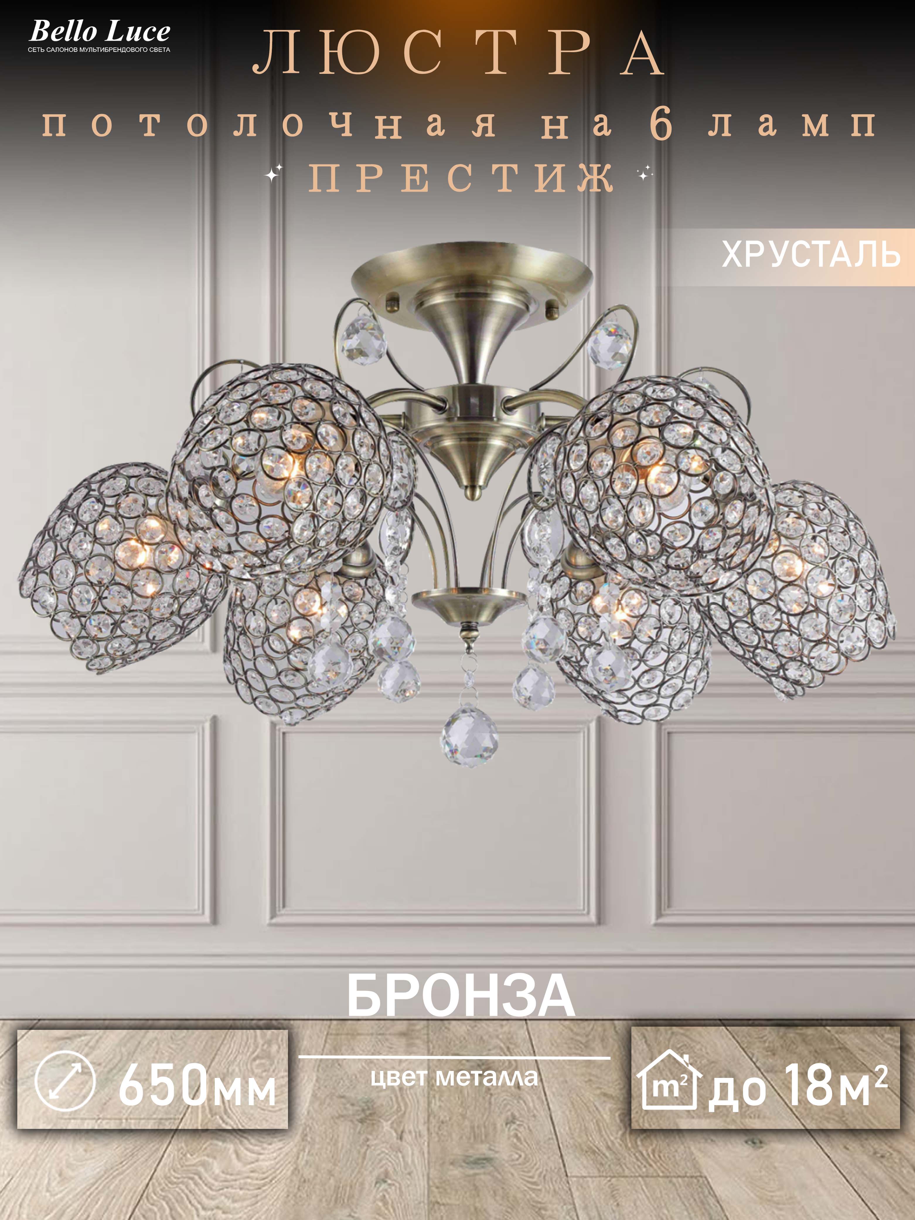 Компания Мегасвет предлагает вам оптом и в розницу Люстра хрустальная античная бронза потолочная с прозрачным хрустальным декором на 6 ламп E27 по цене 11070 рублей.
