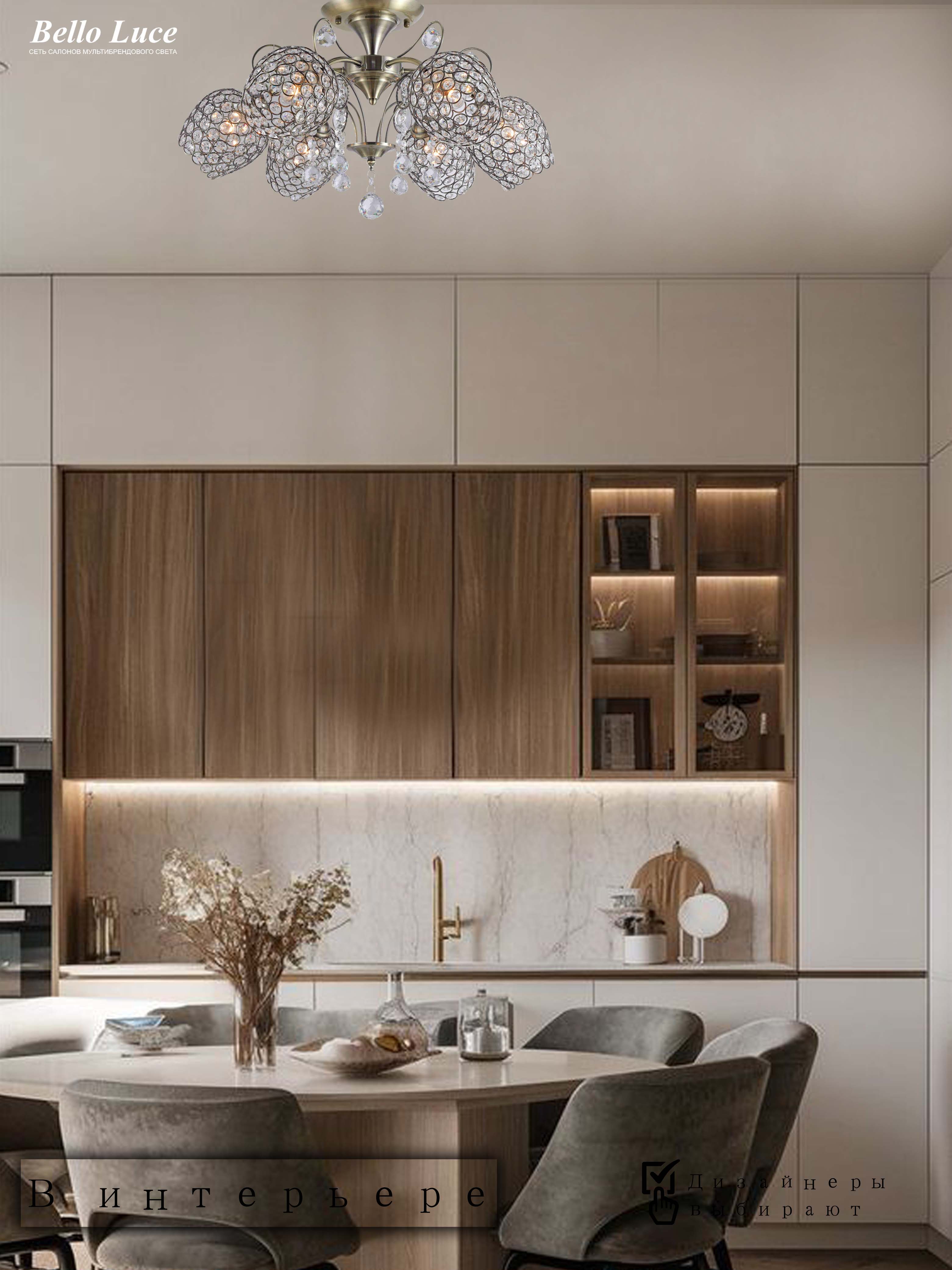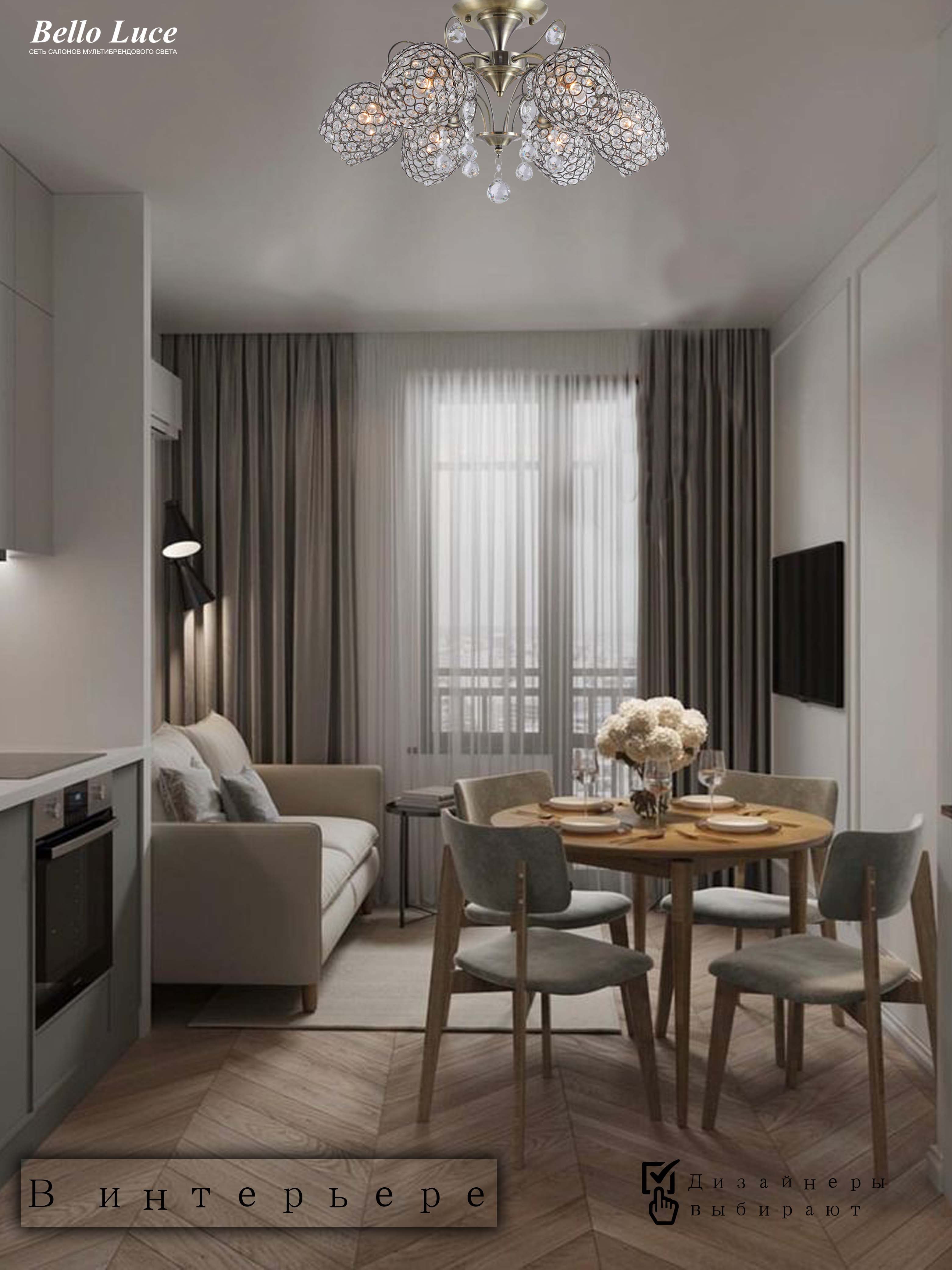 Данная люстра характеризуется современным и трендовым дизайном, который органично впишется как в классические, так и в современные интерьеры. Цвет металлических элементов добавляет дополнительный шик и элегантность, подчеркивая престижный статус этого светильника. Использование хрусталя в оформлении делает изделие не только стильным, но и невероят