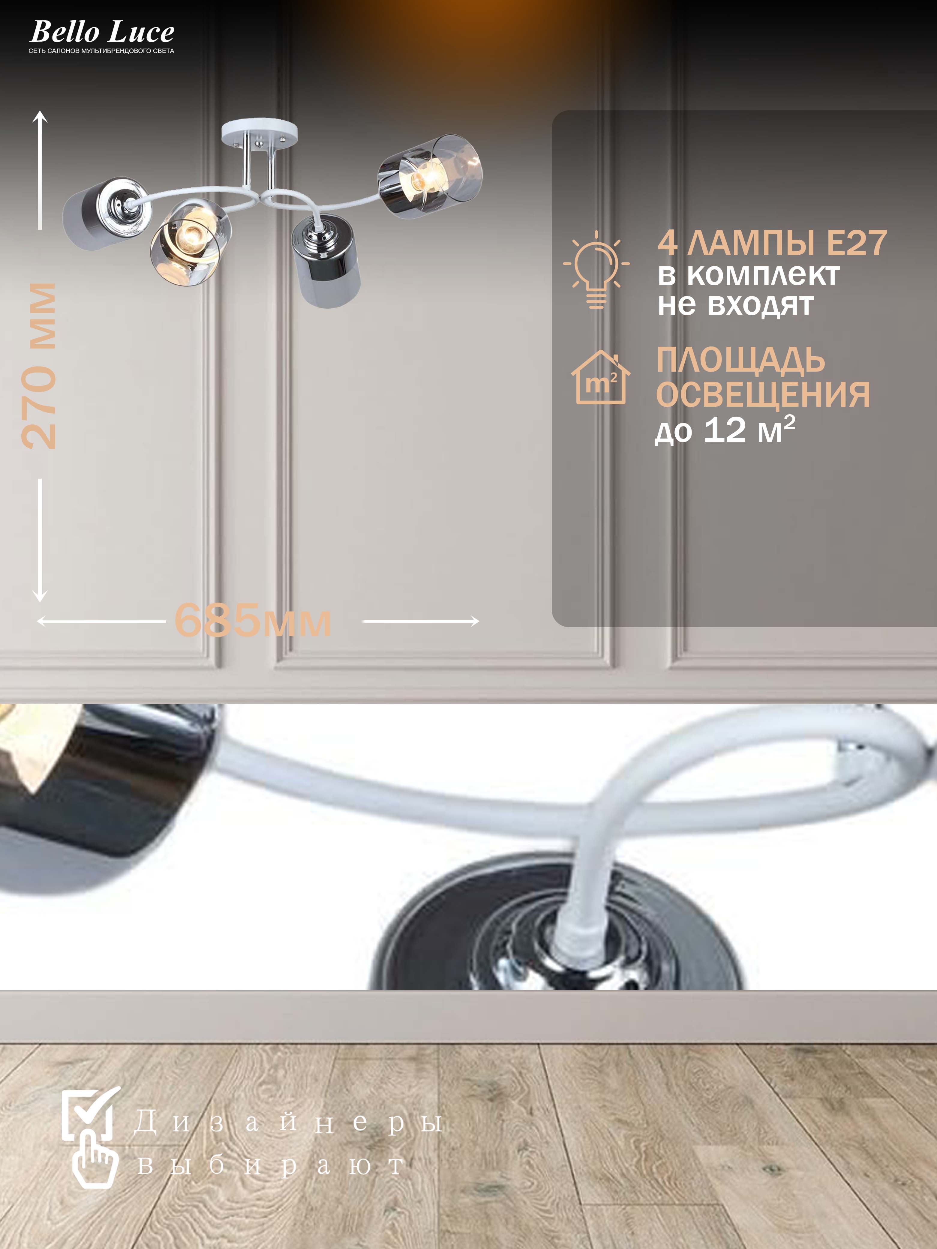 Компания Мегасвет предлагает вам оптом и в розницу Люстра Престиж потолочная с прозрачными плафонами с серебристой отделкой на 4 лампы E27 по цене 3528 рублей.