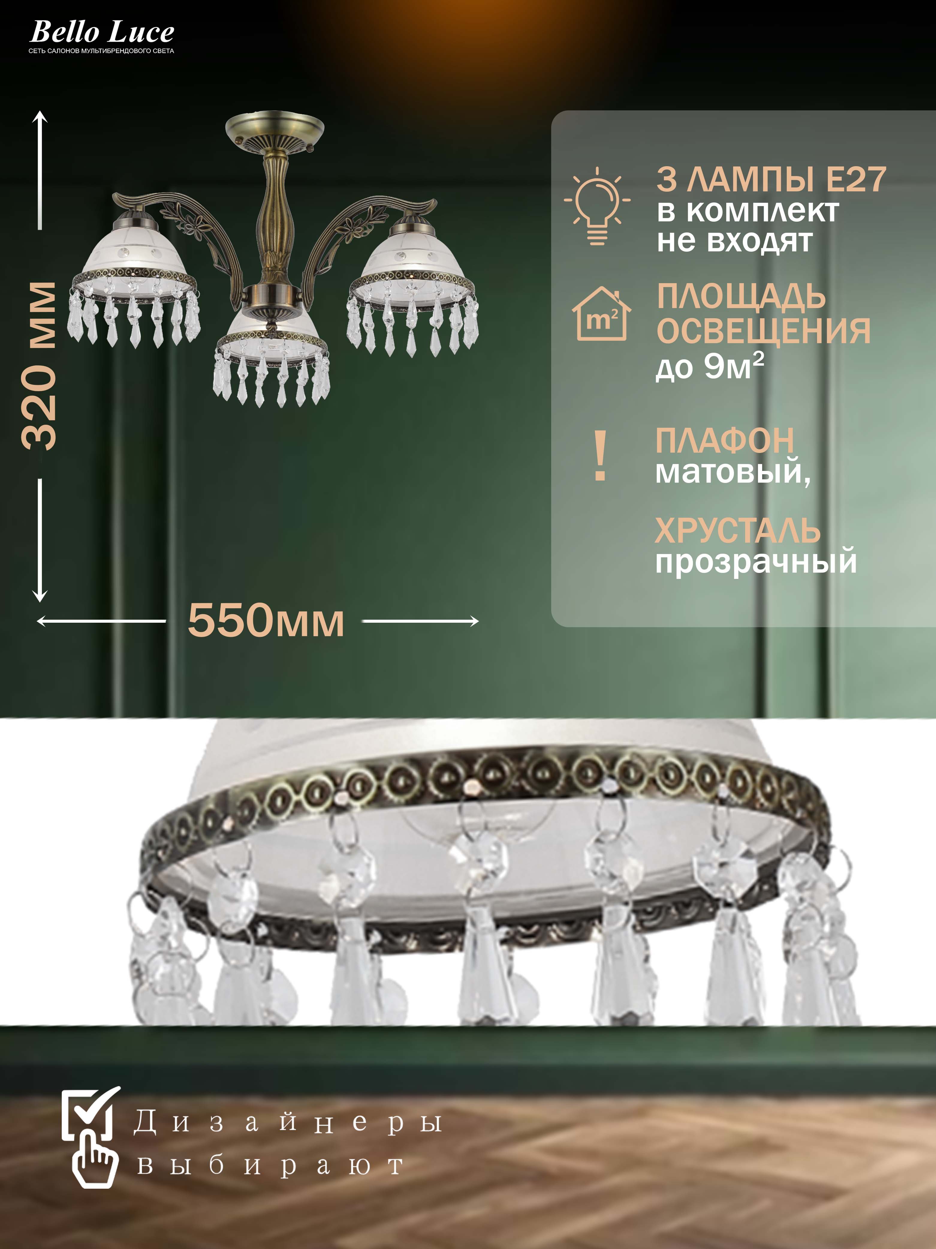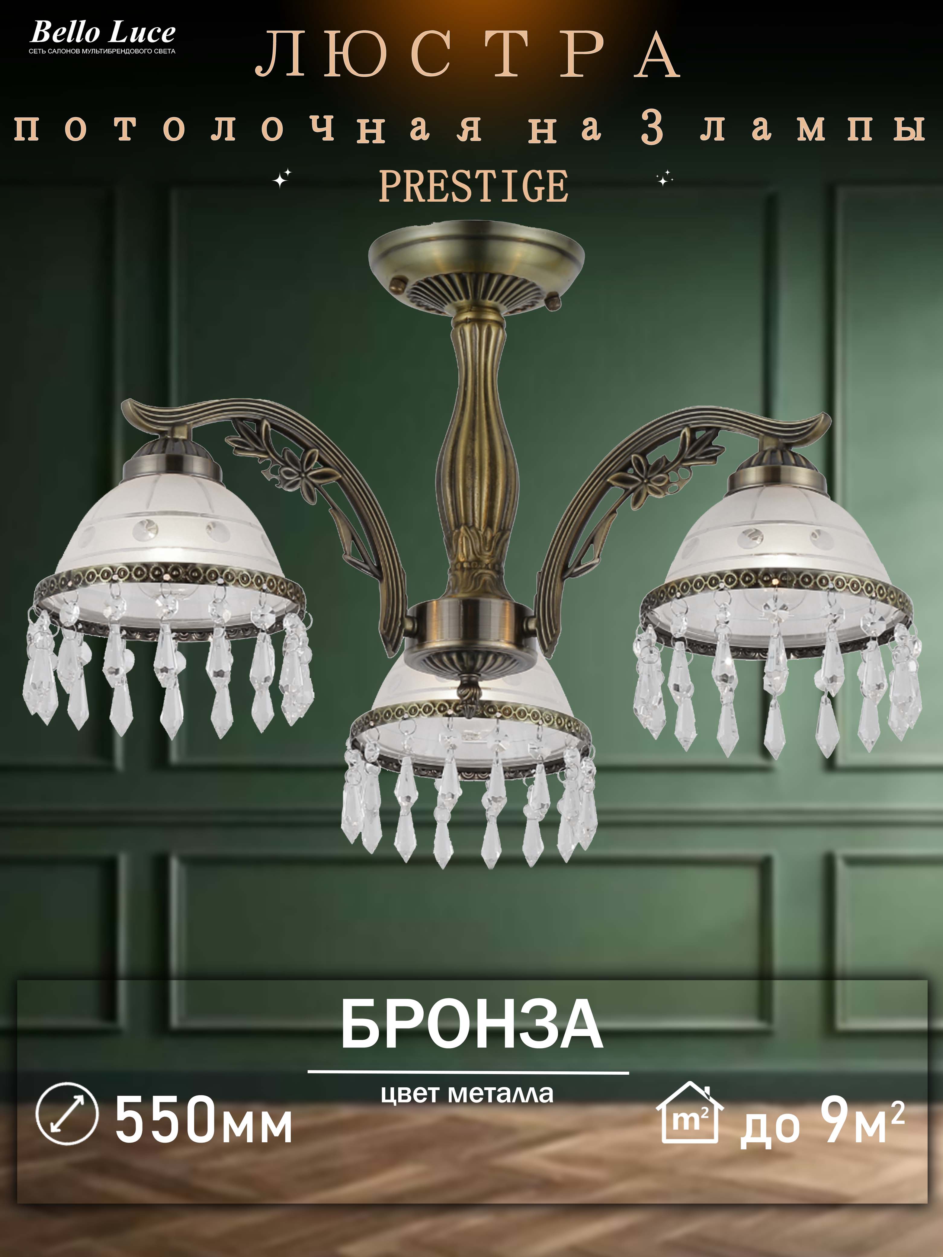 Компания Мегасвет предлагает вам оптом и в розницу Люстра Классика с хрустальными подвесками бронза потолочная на 3 лампы E27 по цене 7236 рублей.