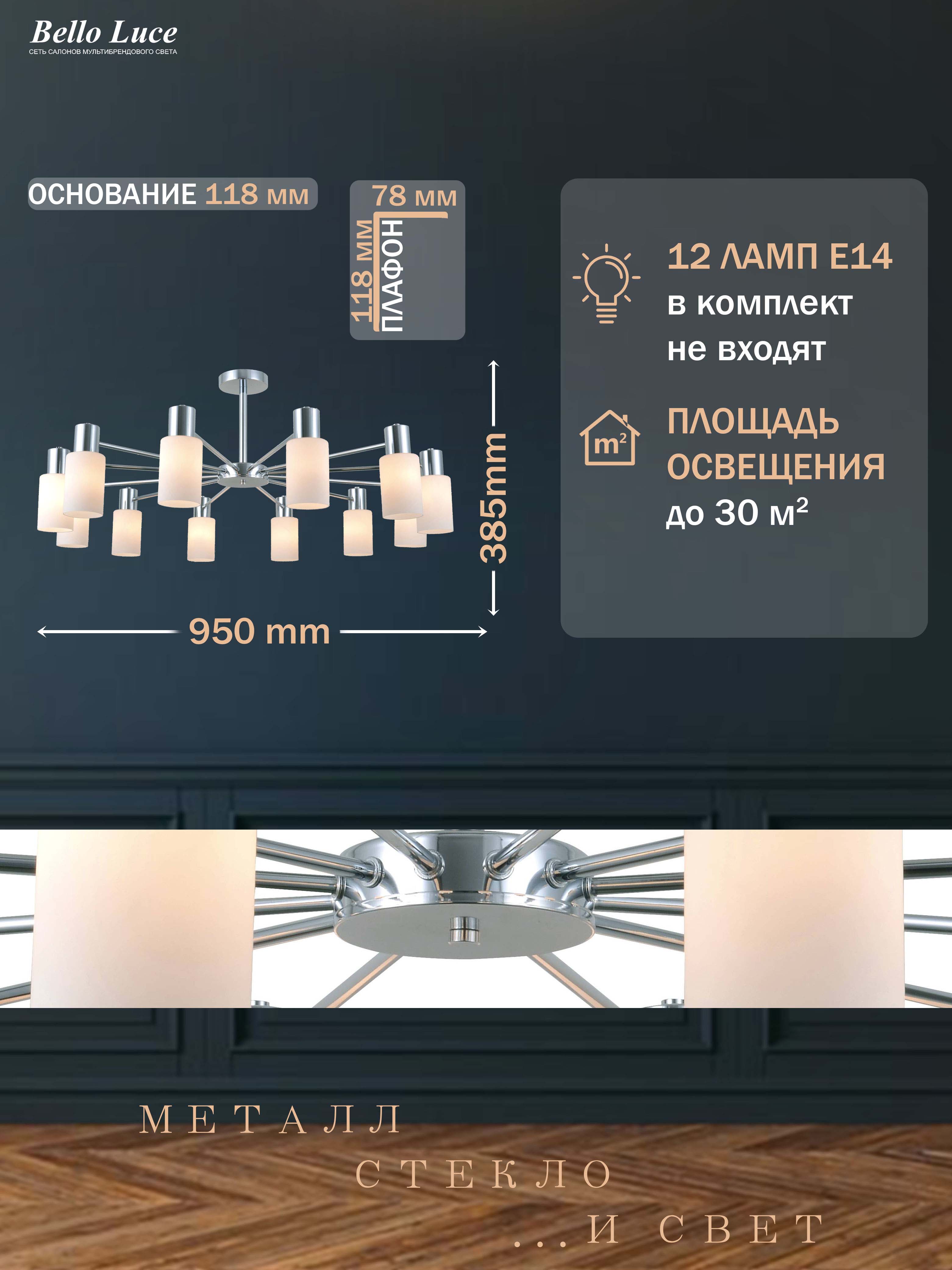 Компания Мегасвет предлагает вам оптом и в розницу Люстра Престиж хром с белыми матовыми плафонами потолочная на 12 ламп E14 по цене 12330 рублей.