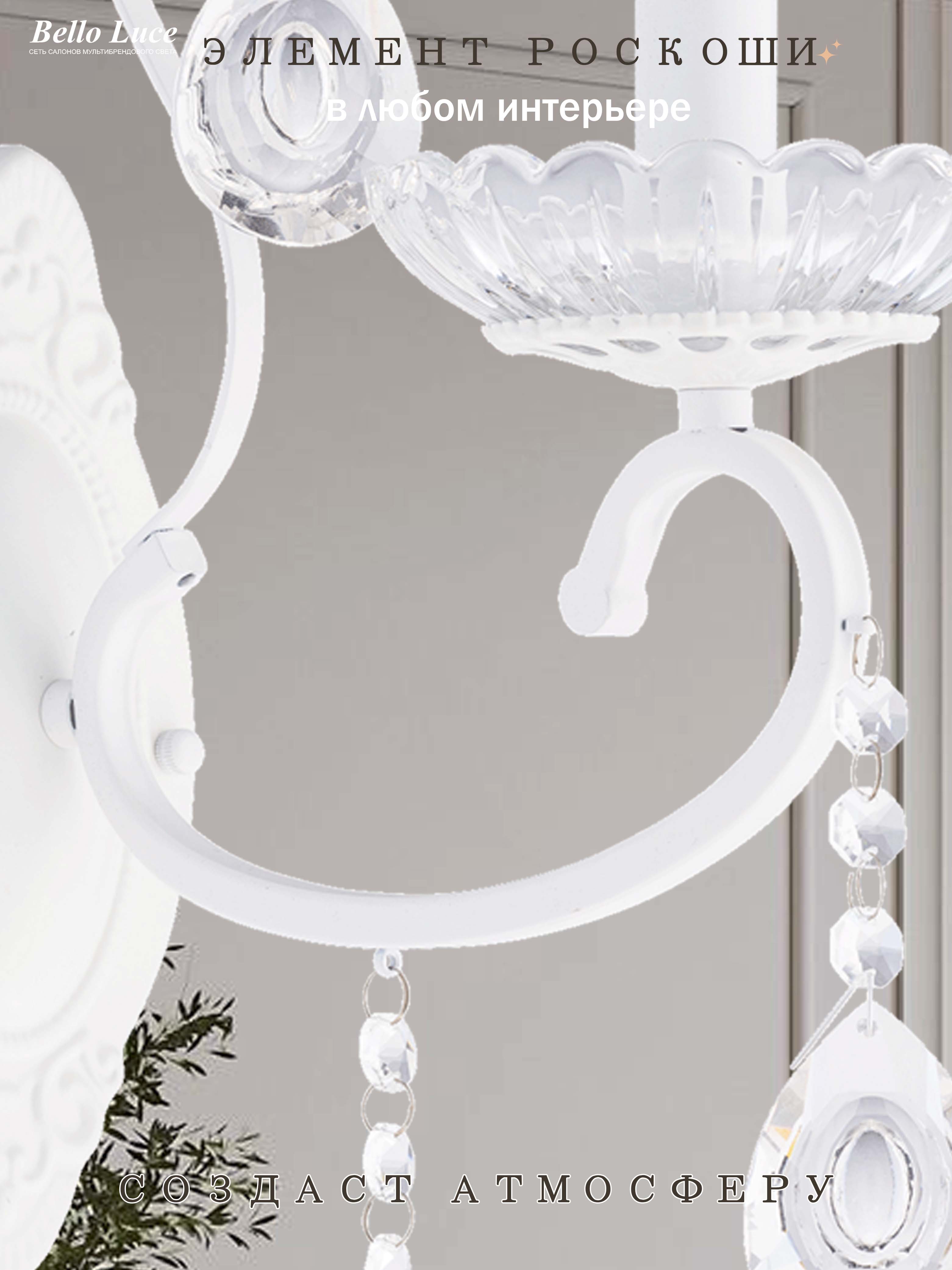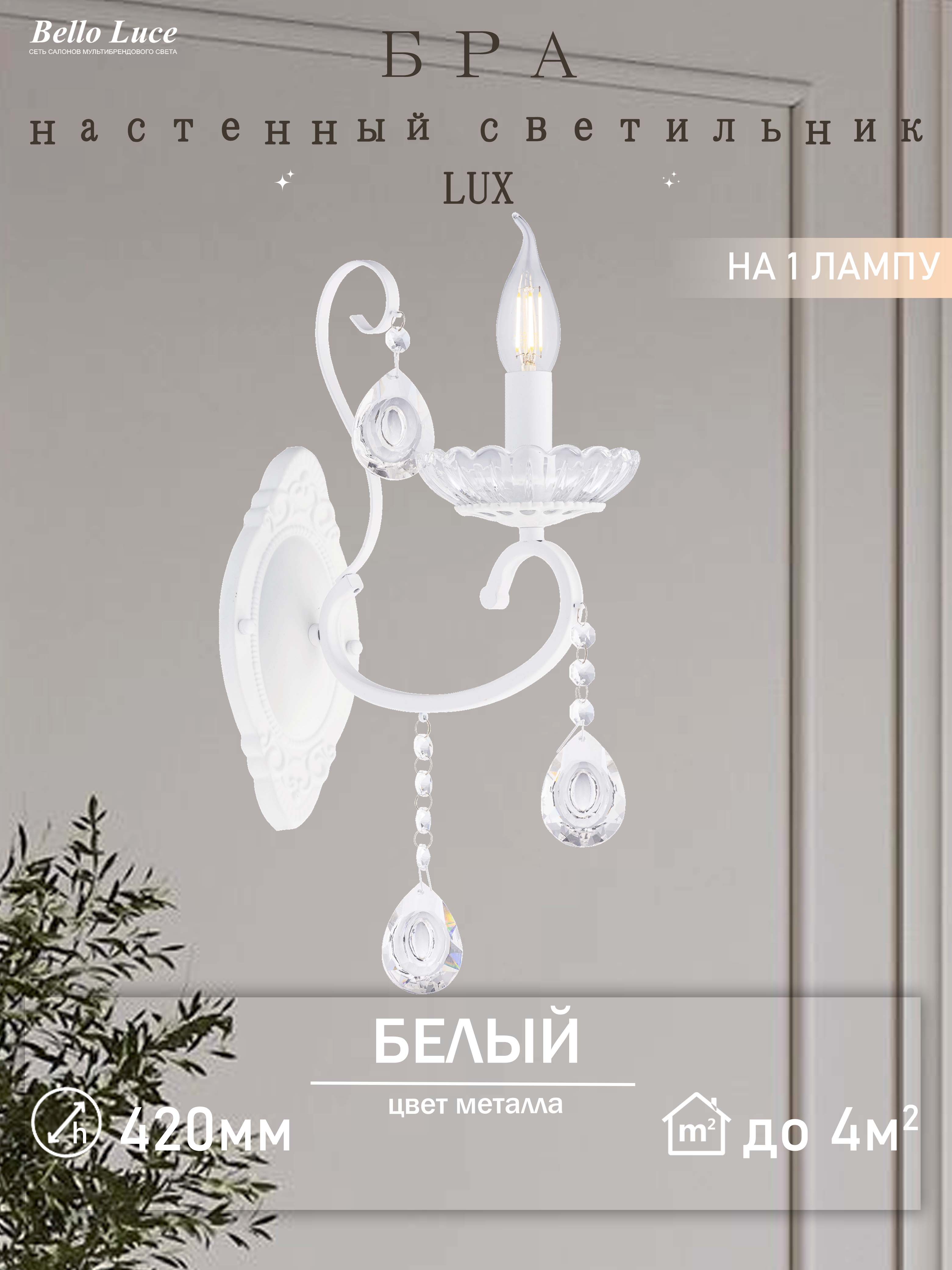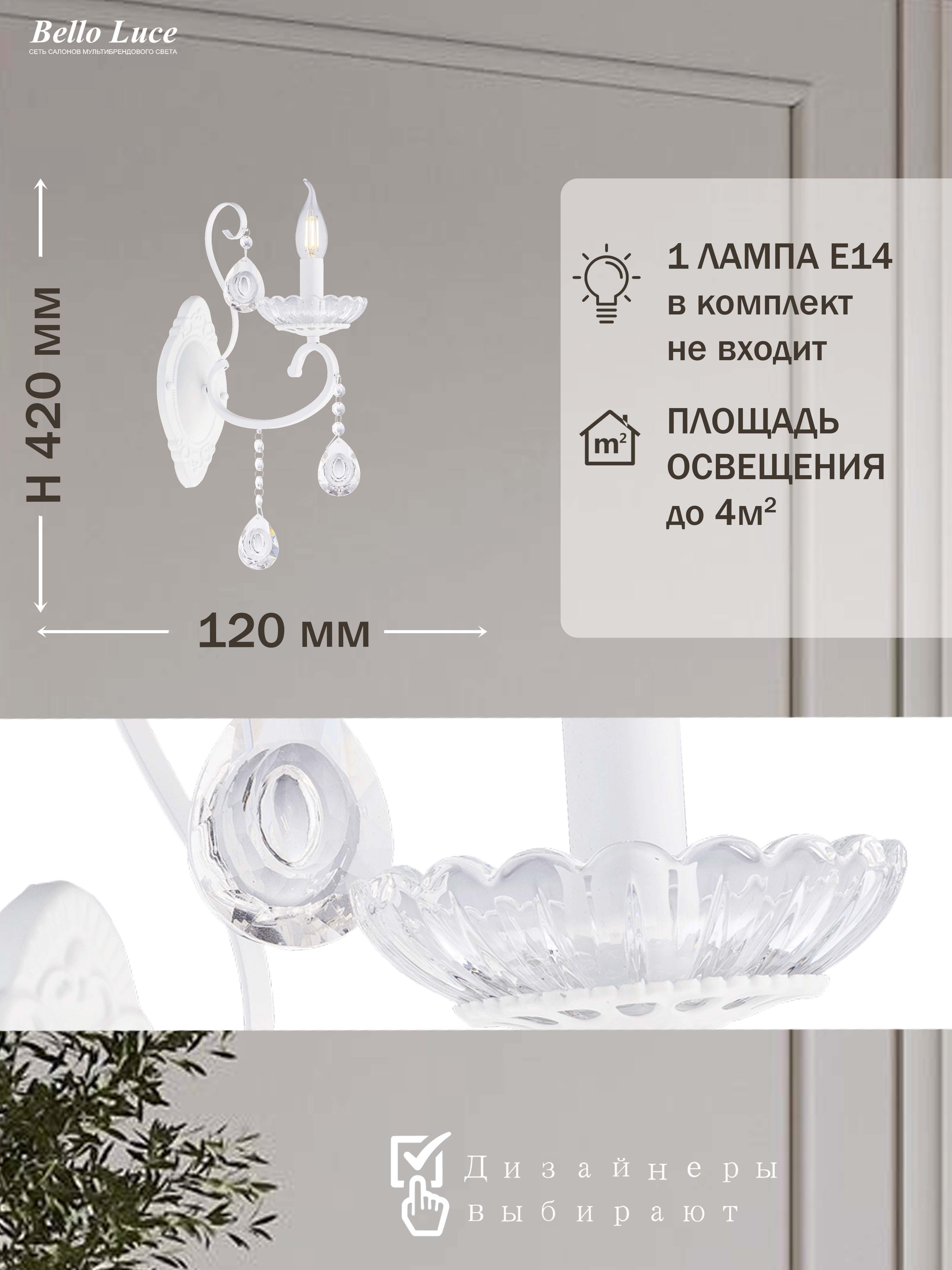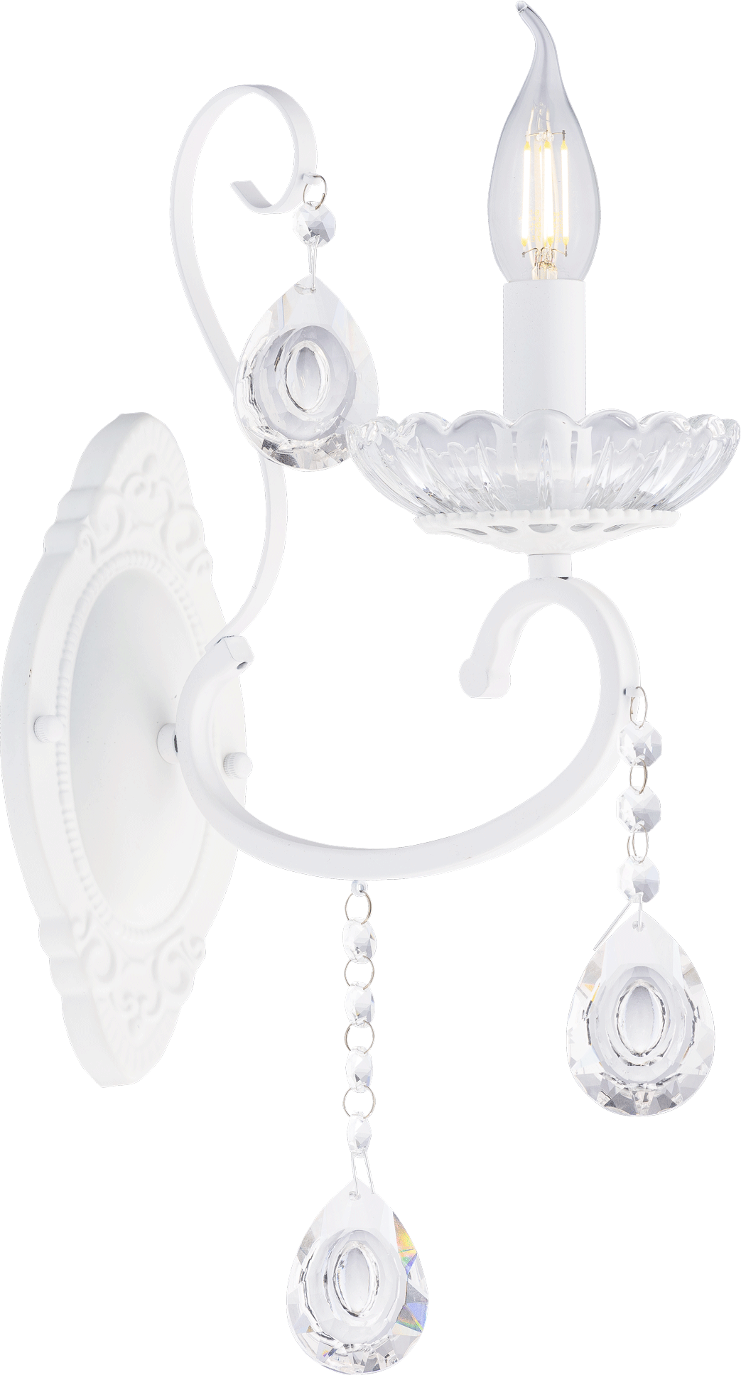 Компания Мегасвет предлагает вам оптом и в розницу Светильник настенный, бра Классика белая с прозрачными хрустальными подвесками на 1 лампу E14 по цене 1450 рублей.
