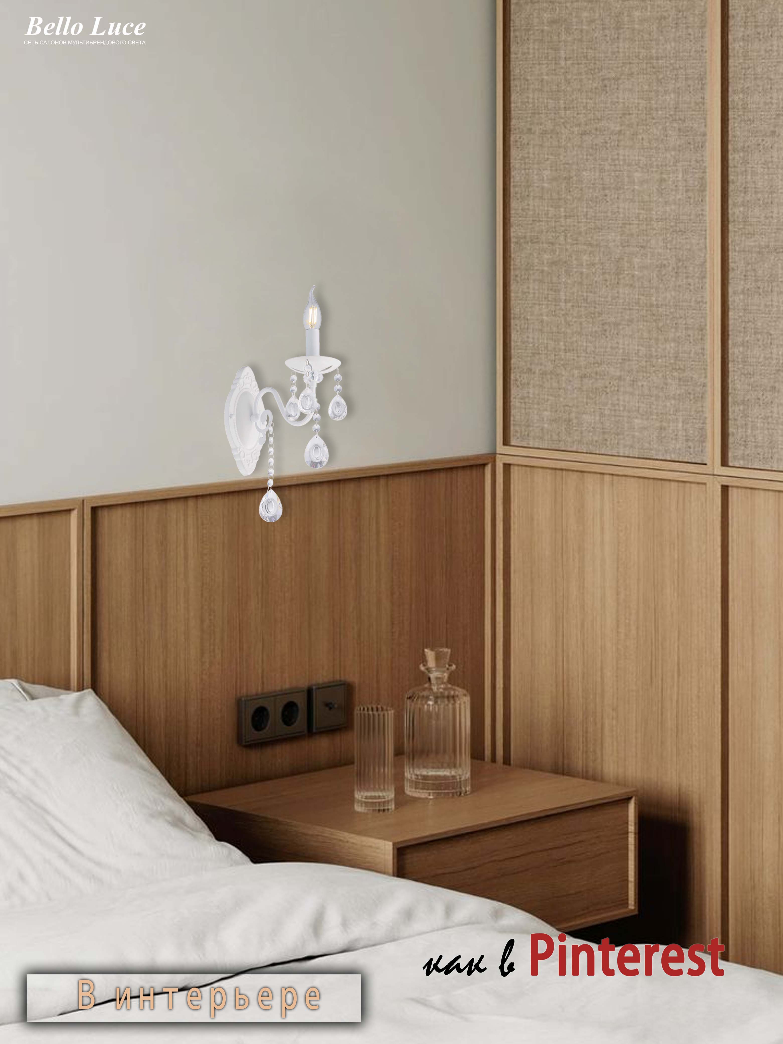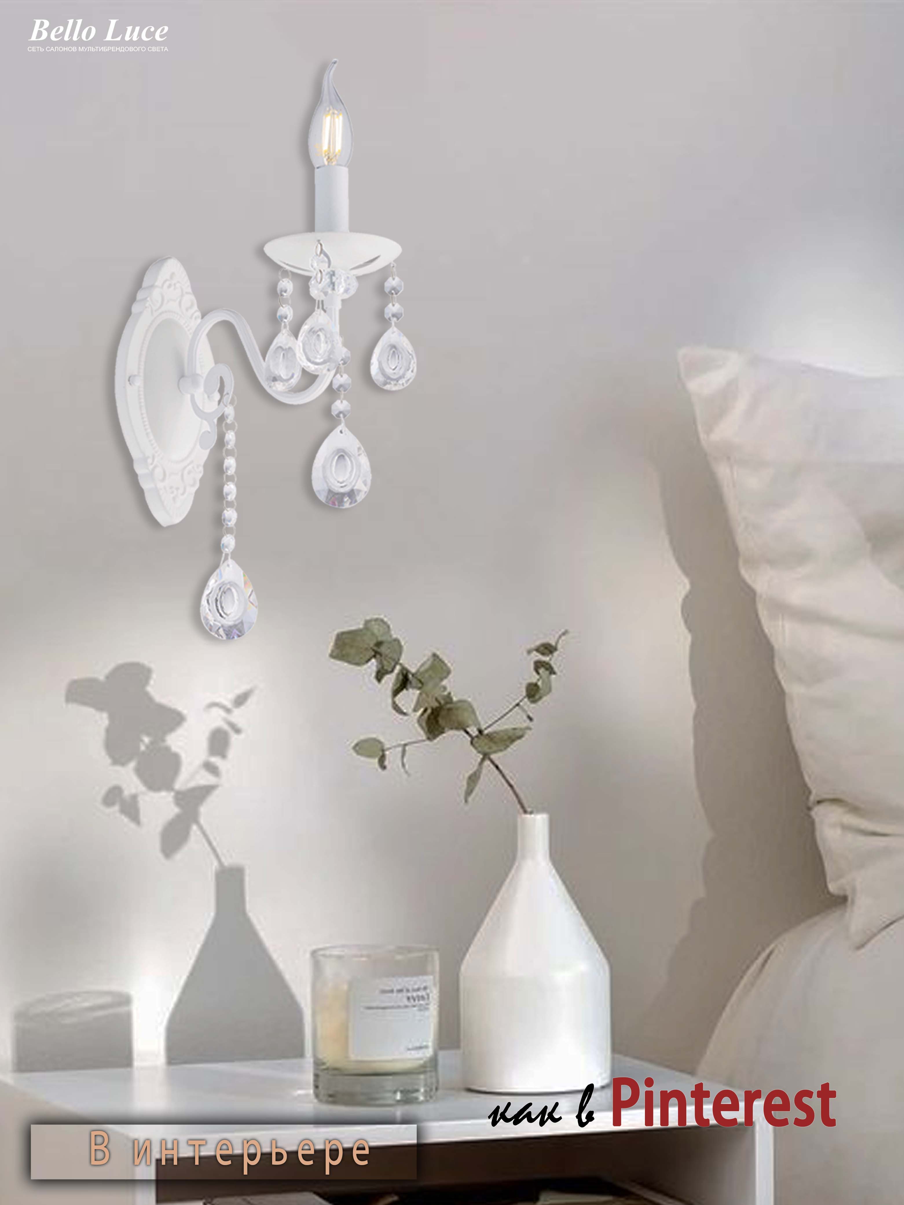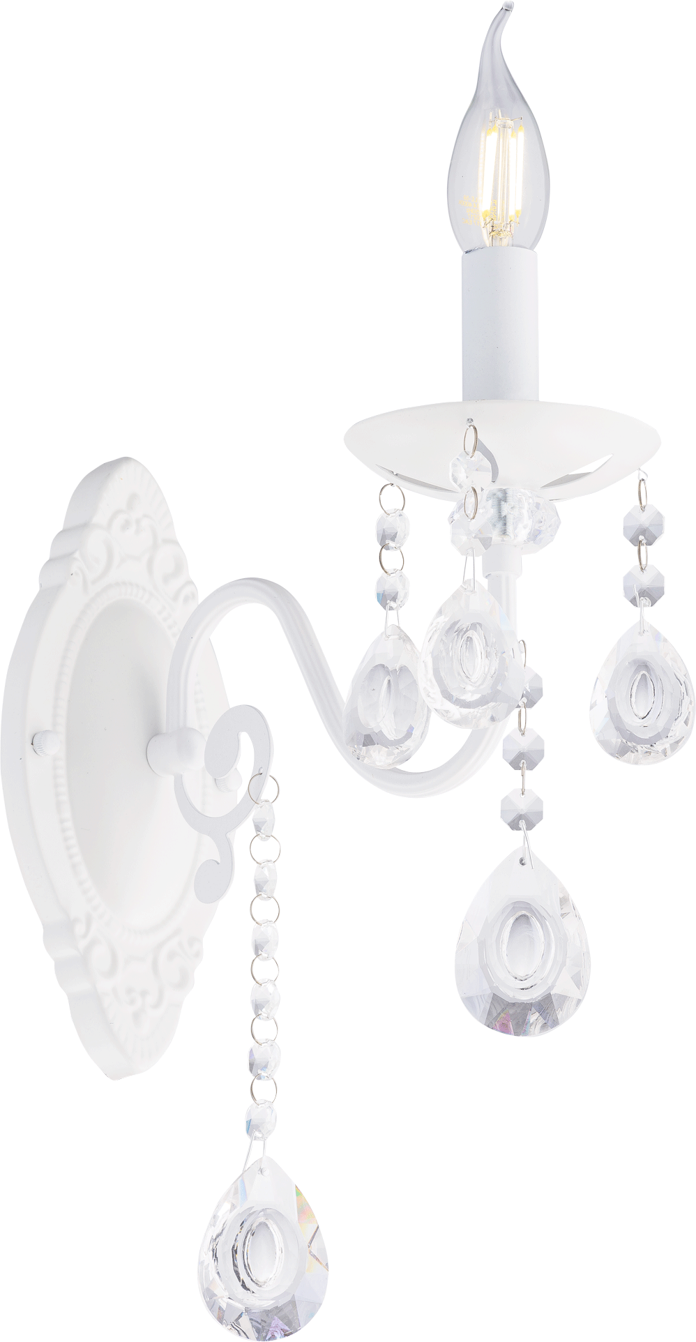 Компания Мегасвет предлагает вам оптом и в розницу Светильник настенный, бра Классика белая с прозрачными хрустальными подвесками на 1 лампу E14 по цене 1450 рублей.