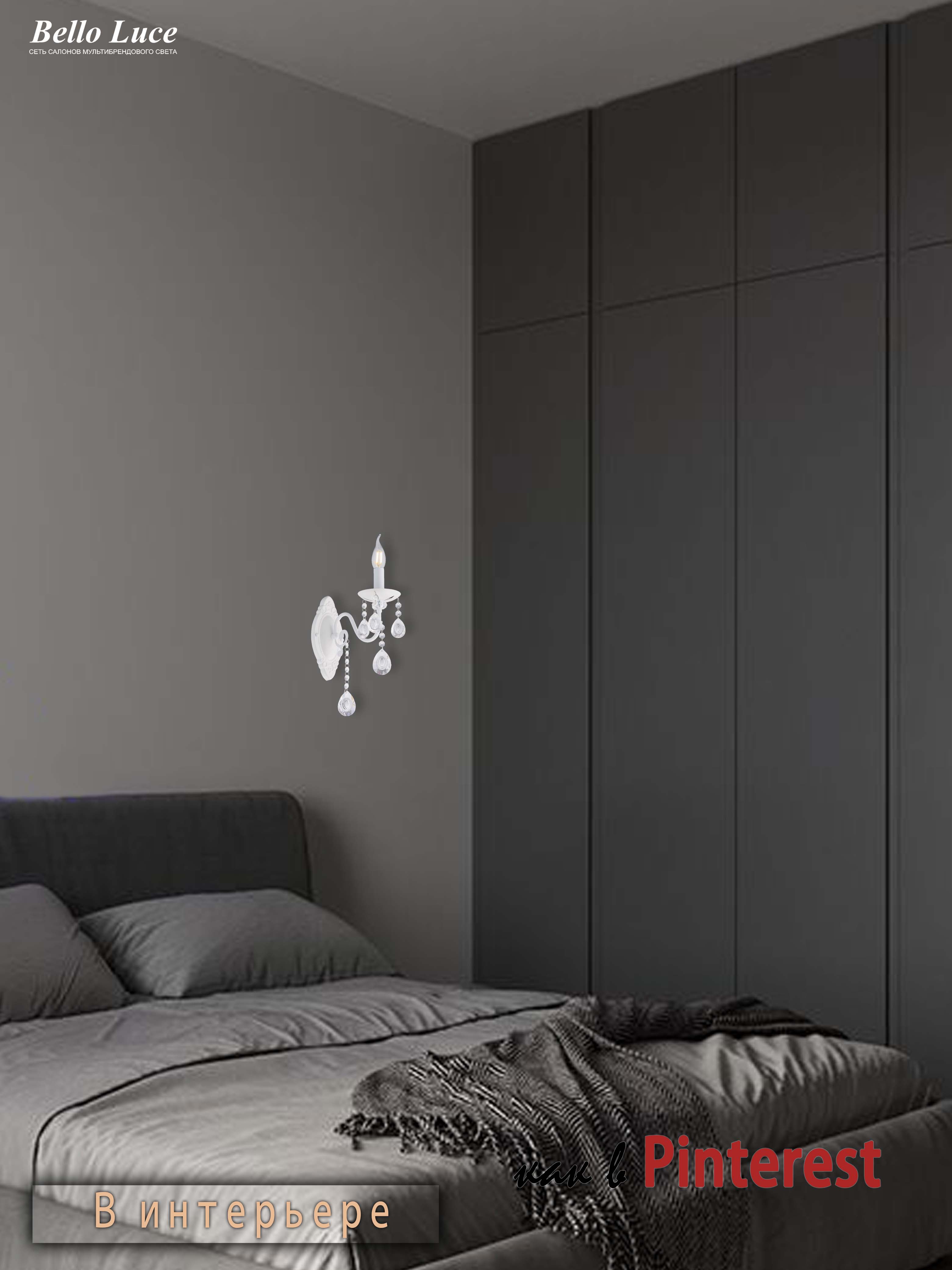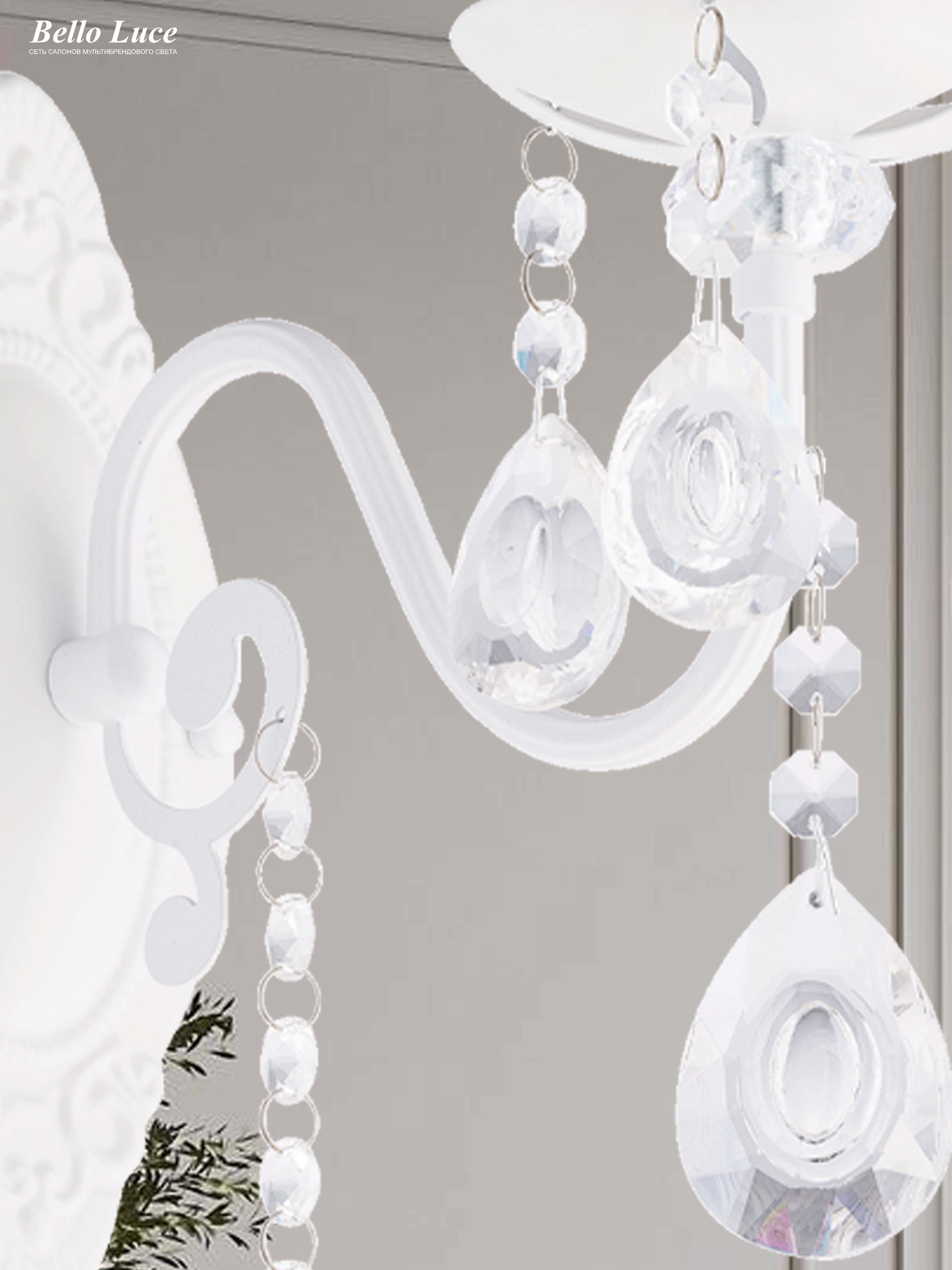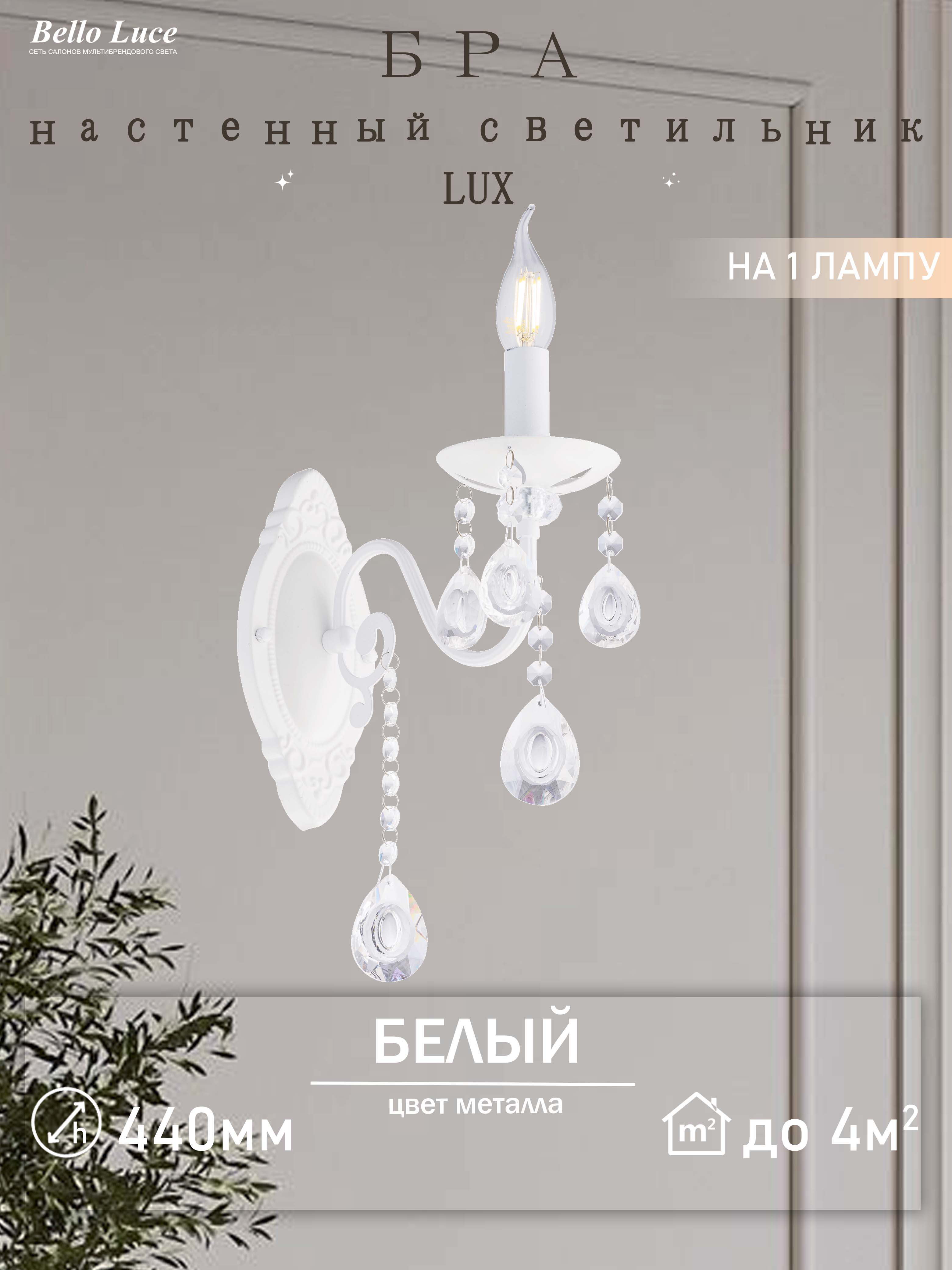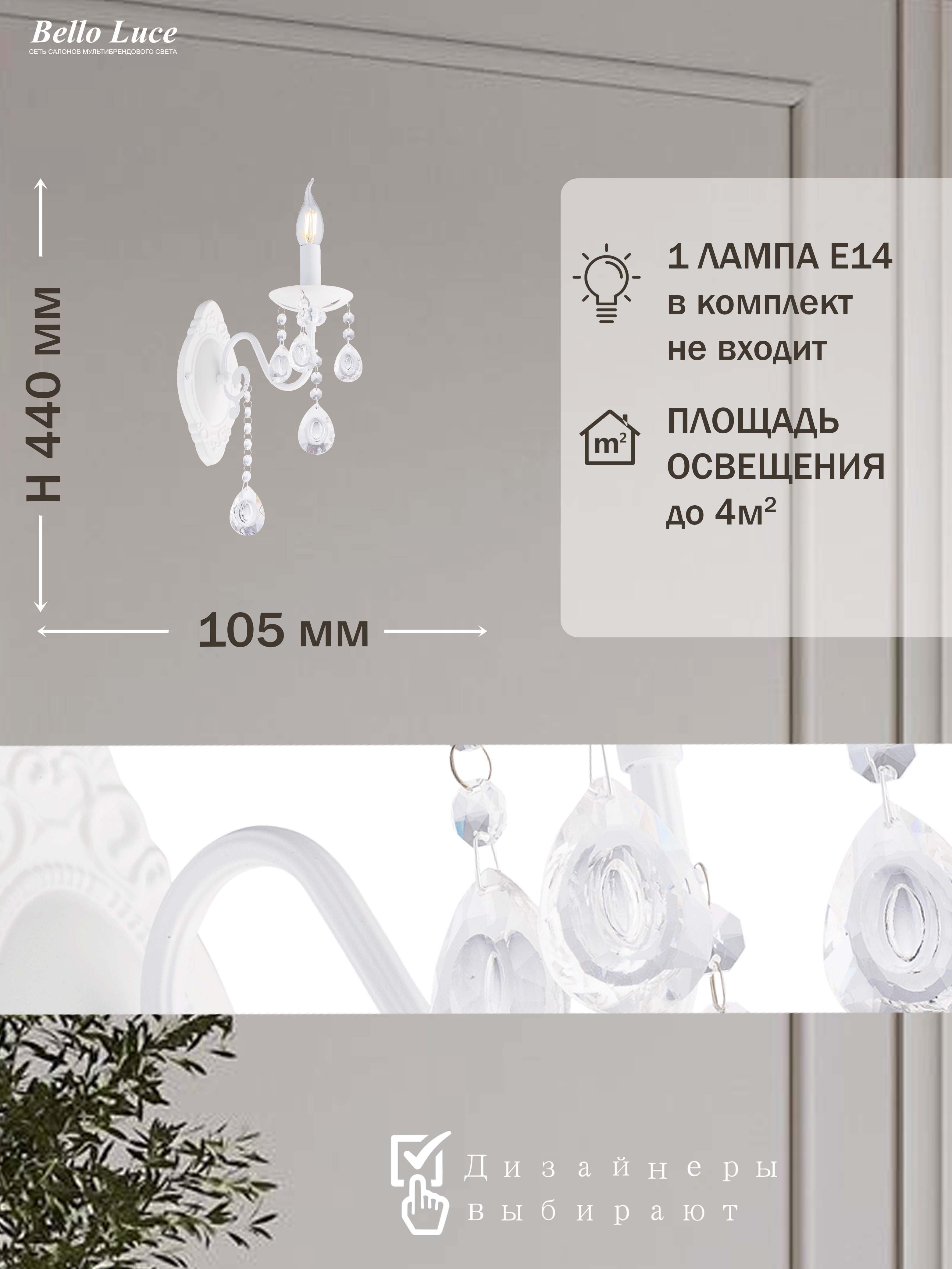 Компания Мегасвет предлагает вам оптом и в розницу Светильник настенный, бра Классика белая с прозрачными хрустальными подвесками на 1 лампу E14 по цене 1450 рублей.