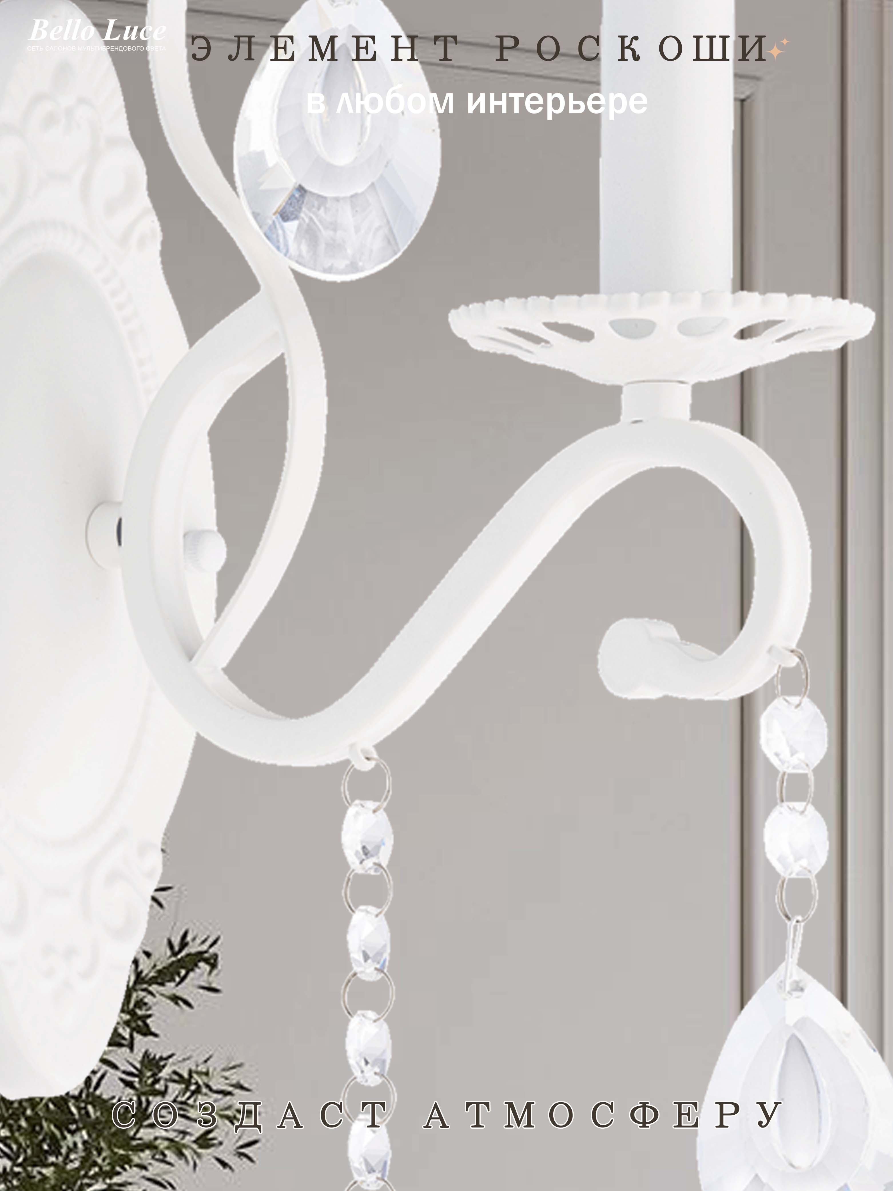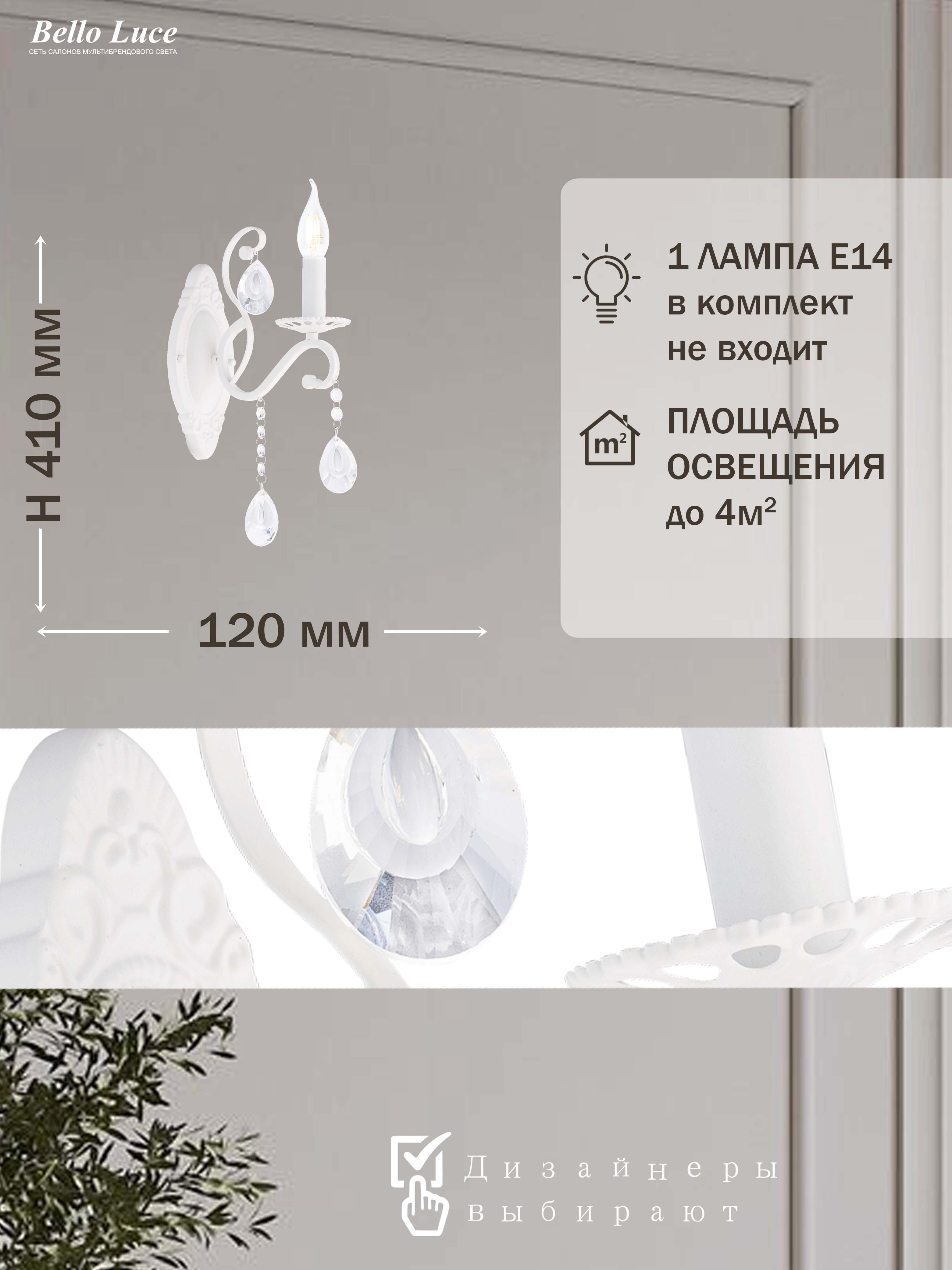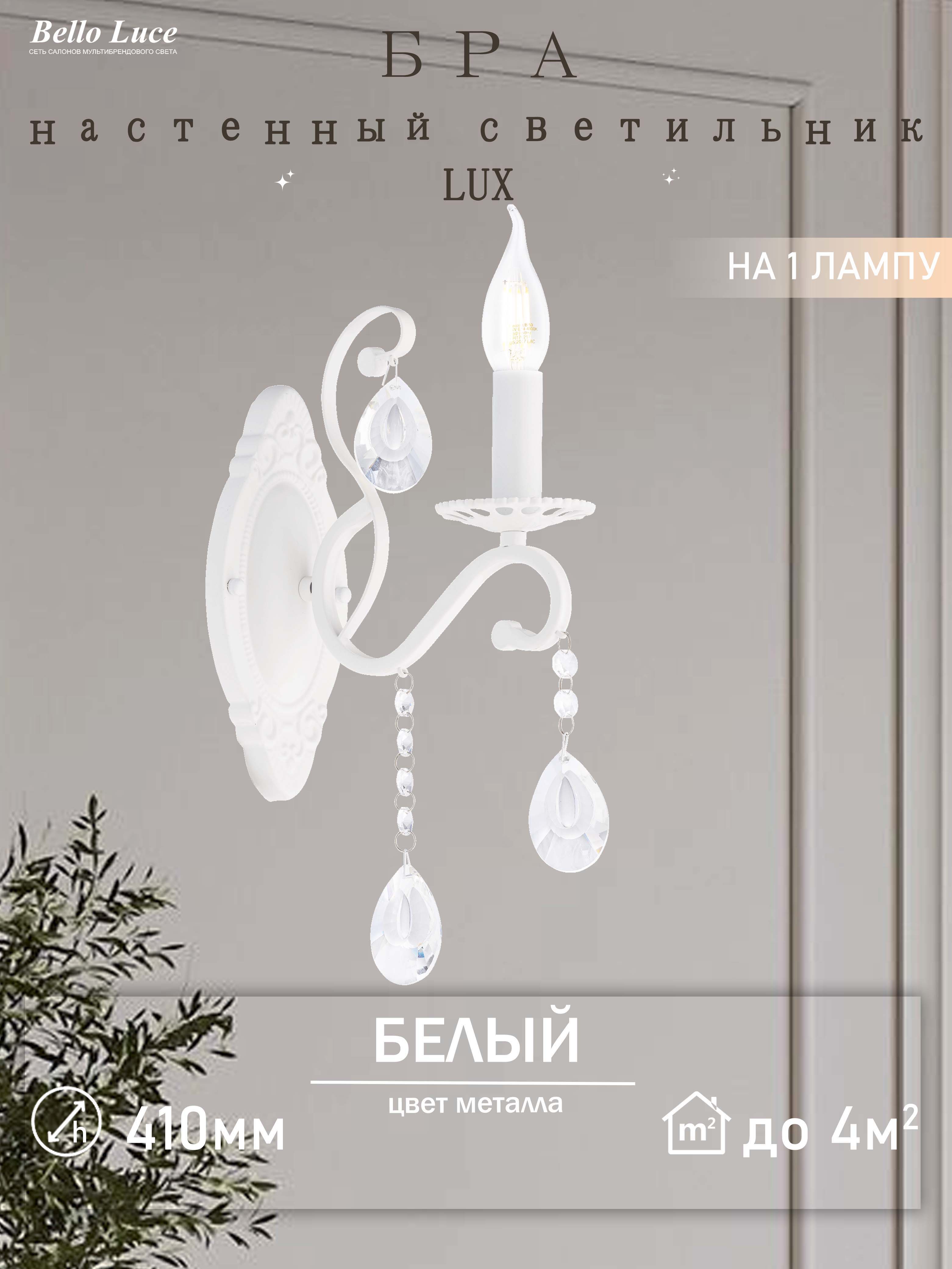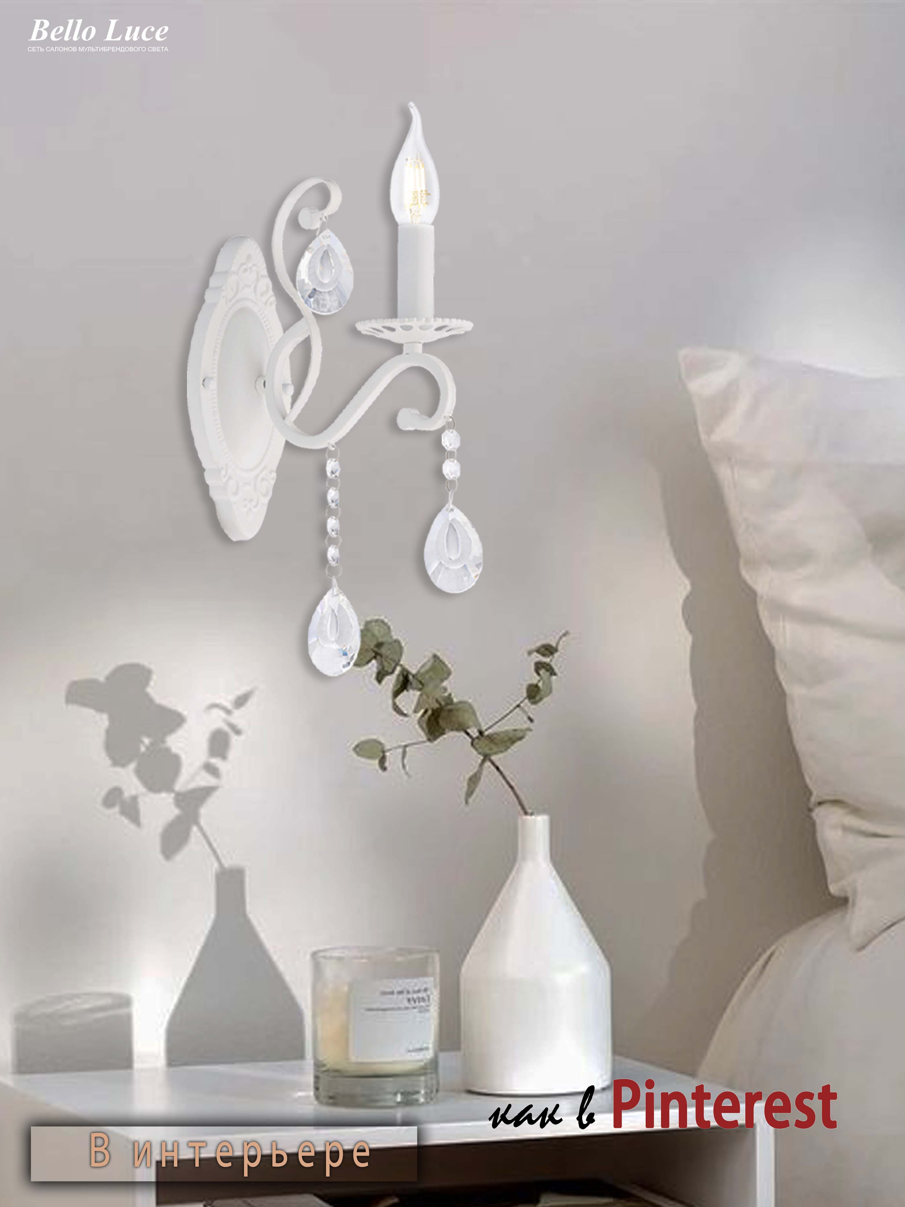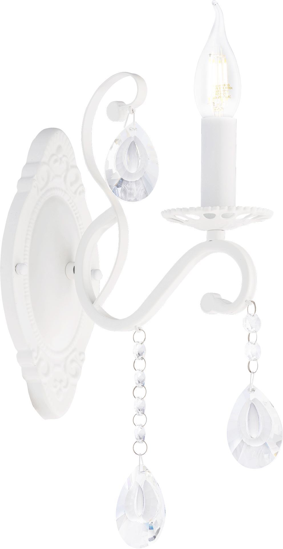 Компания Мегасвет предлагает вам оптом и в розницу Светильник настенный, бра Классика белая с прозрачными хрустальными подвесками на 1 лампу E14 по цене 1450 рублей.