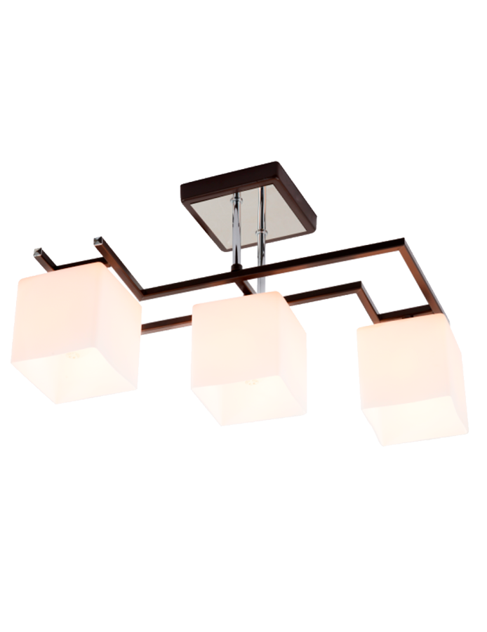Компания Мегасвет предлагает вам оптом и в розницу Люстра Престиж потолочная коричневая с белыми матовыми плафонами на 3 лампы E27 по цене 3245 рублей.